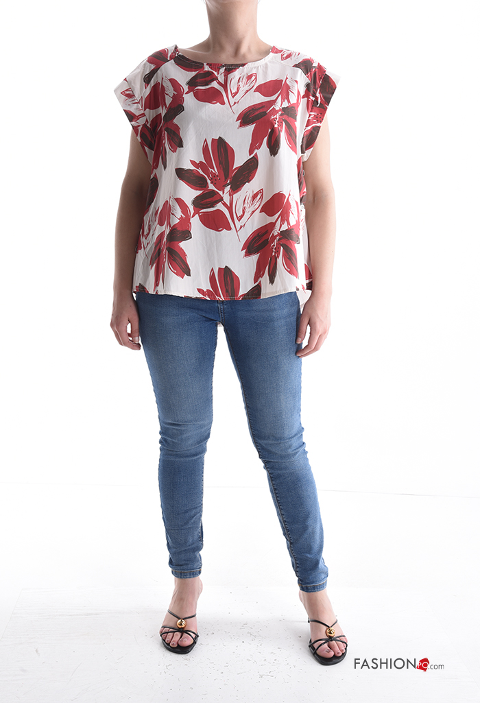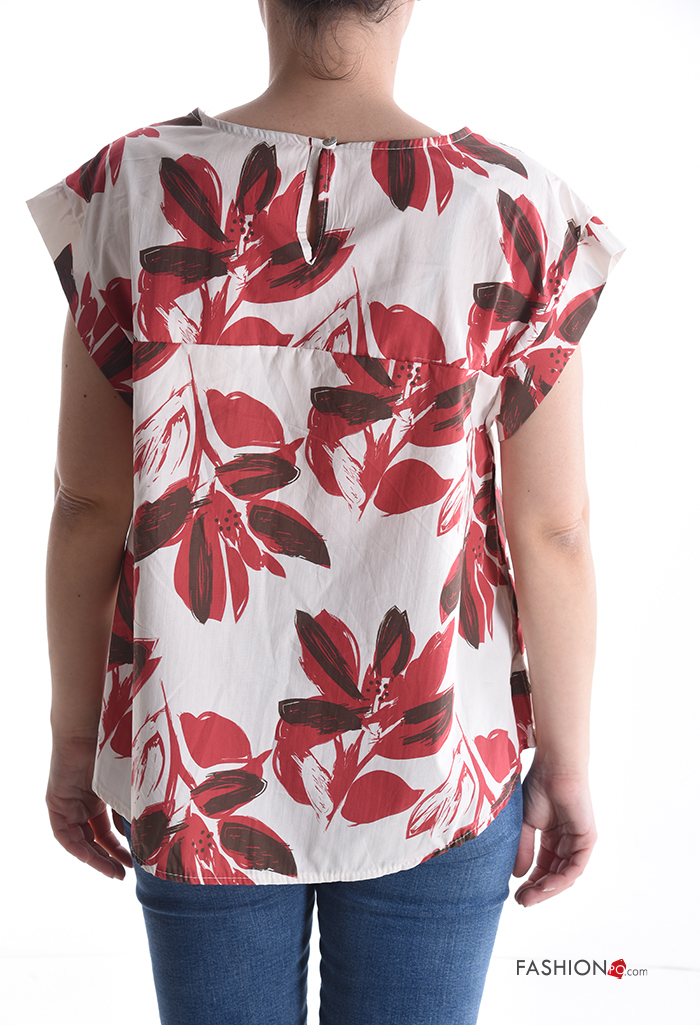 Home > Abbigliamento > Camicie e Bluse > Blusa in Cotone maniche corte girocollo Fantasia con foglie con bottoni