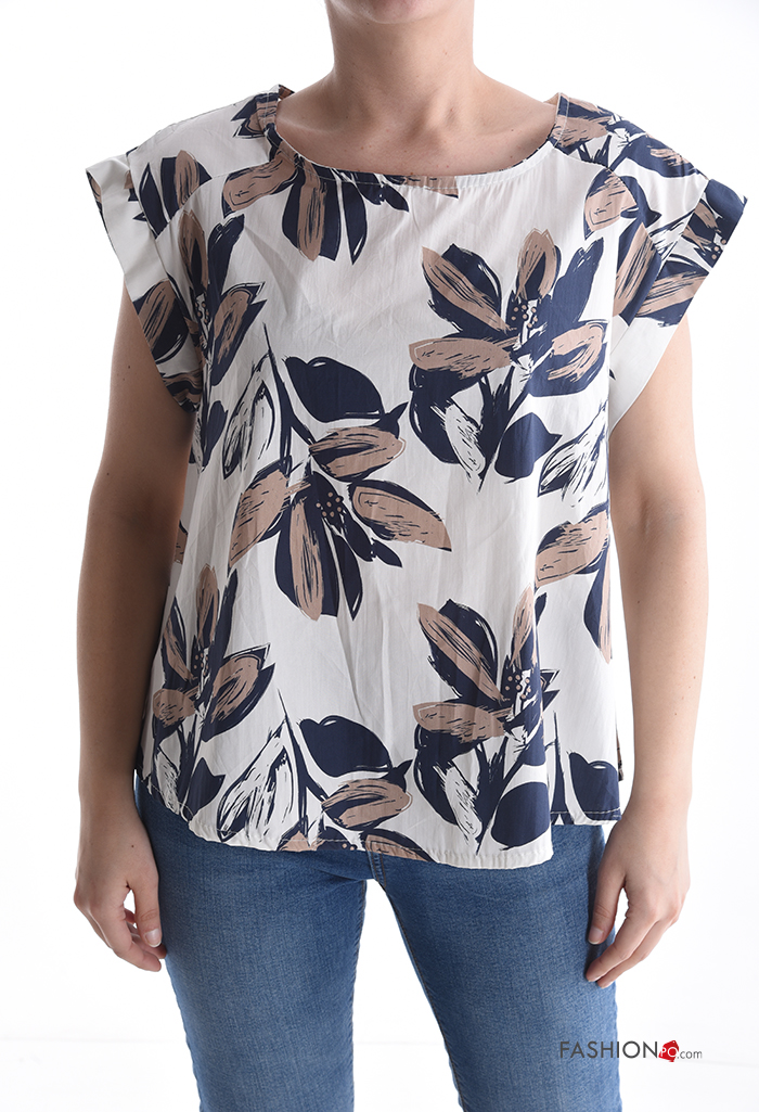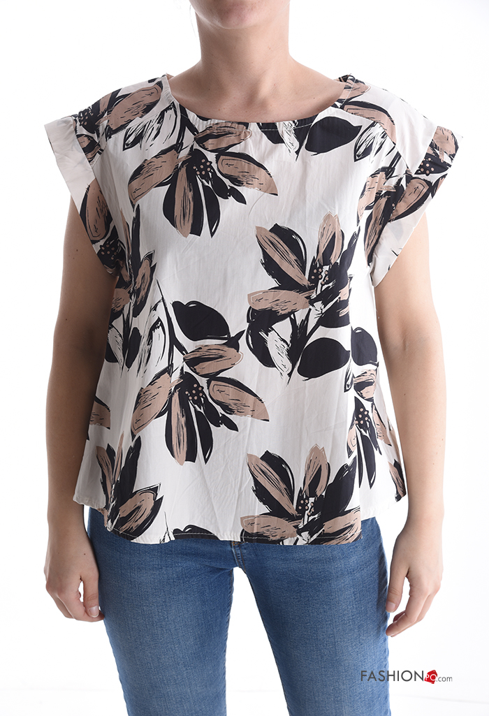 Blusa in Cotone maniche corte girocollo Fantasia con foglie con bottoni