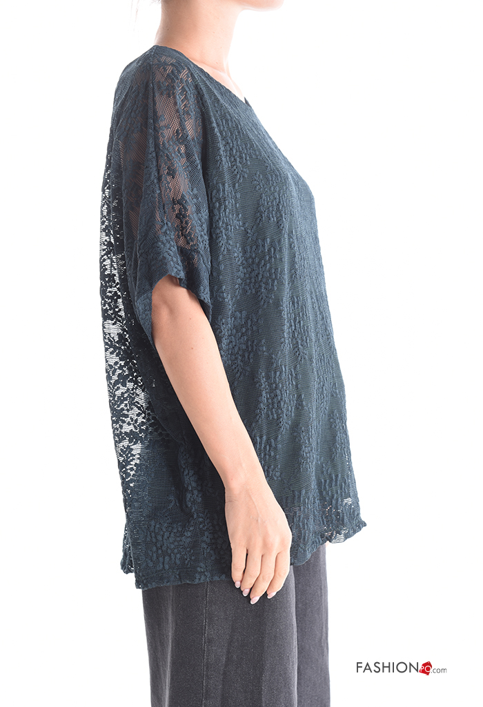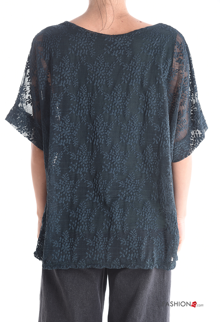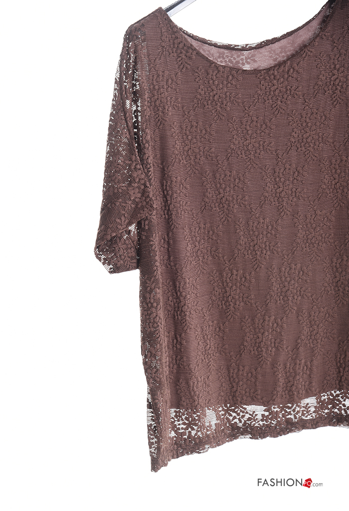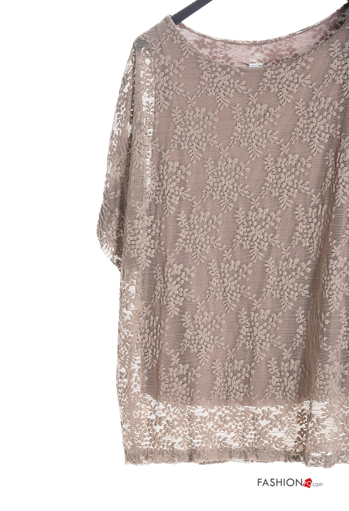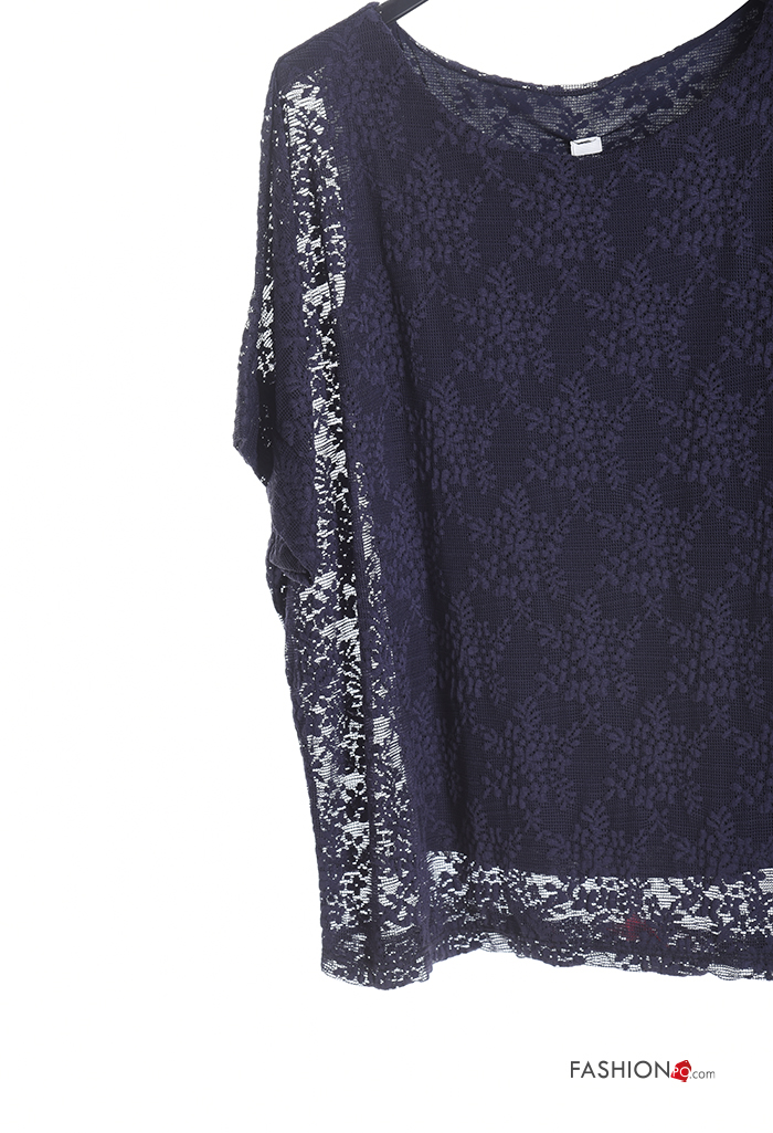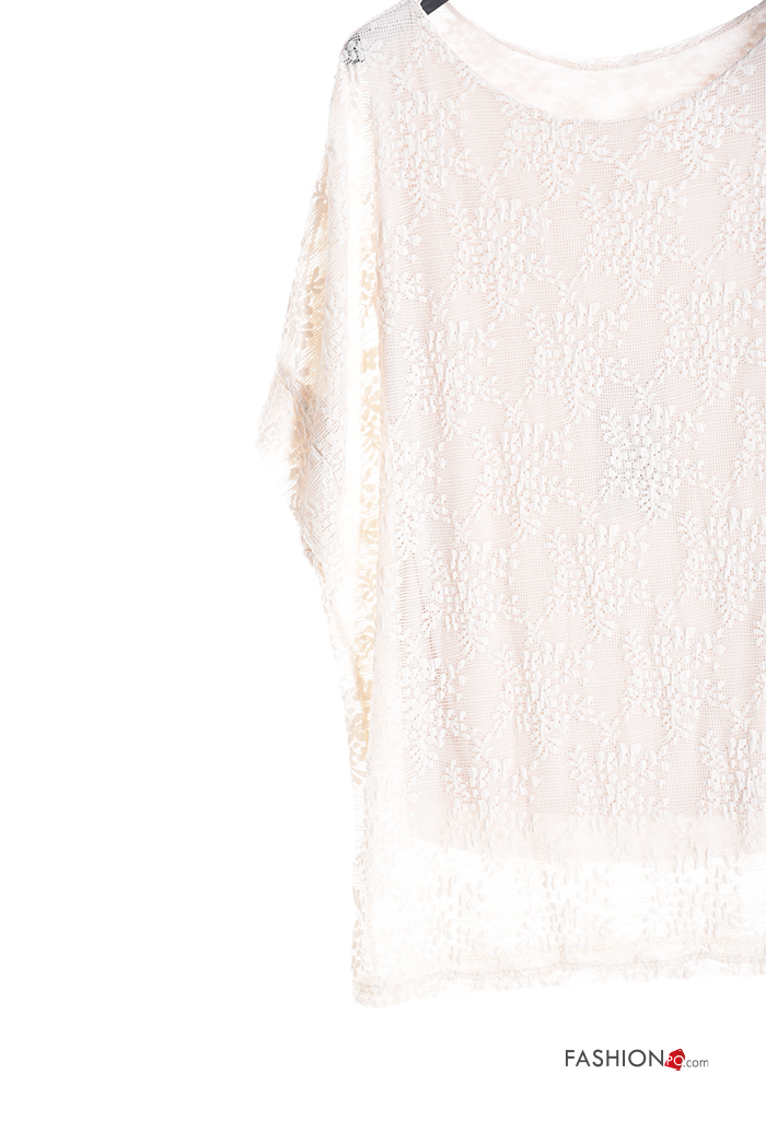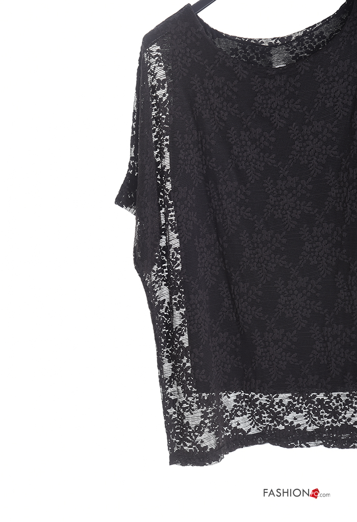 Blusa girocollo pizzo maniche corte Fantasia ricamata con fodera
