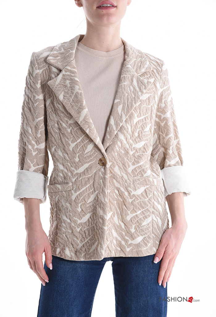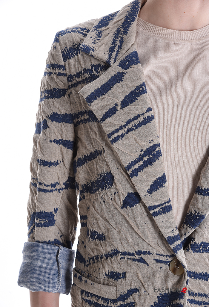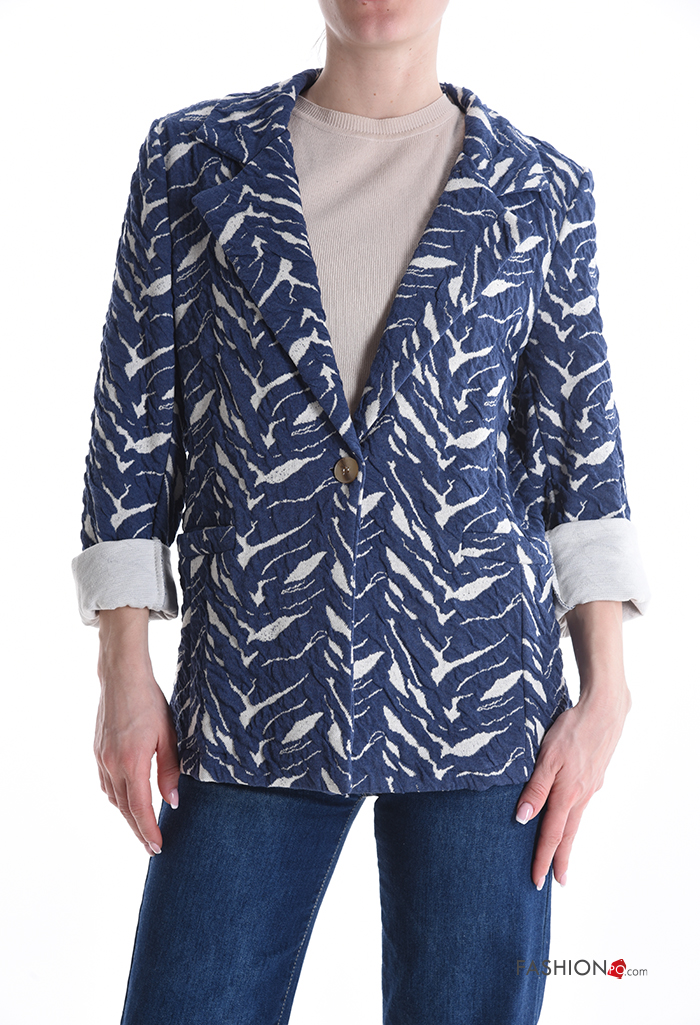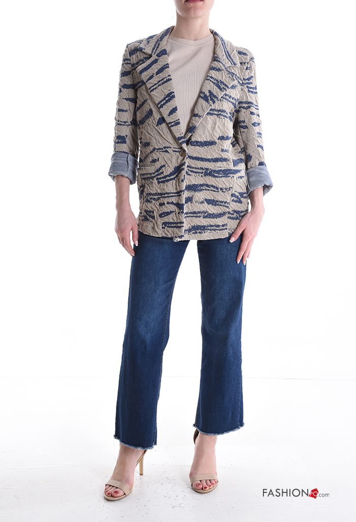 Giacca in Cotone maniche lunghe Fantasia astratta con bottoni senza fodera