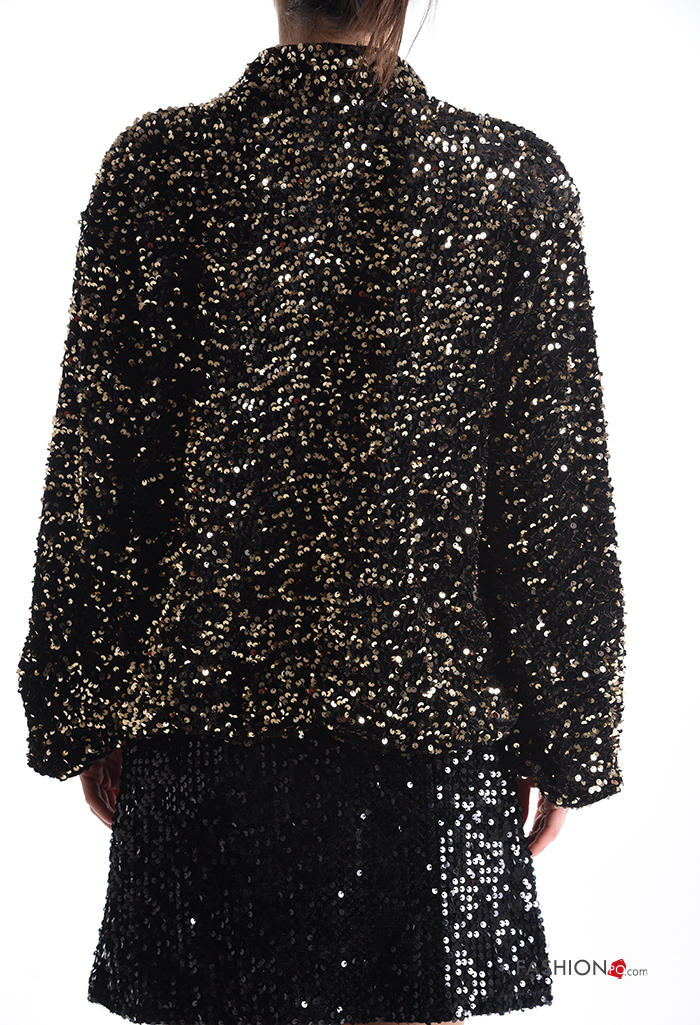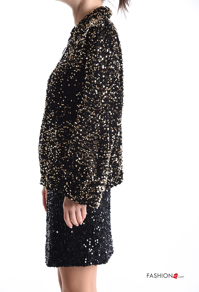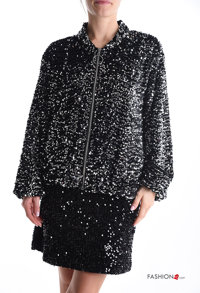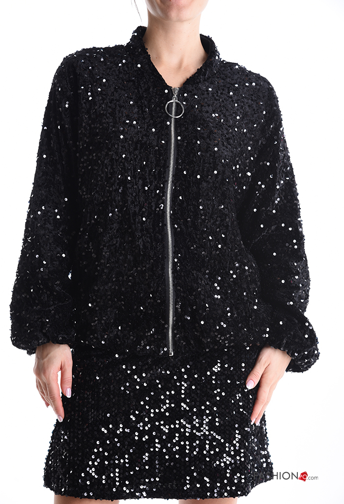 Bomber in velluto con fodera con paillettes con zip