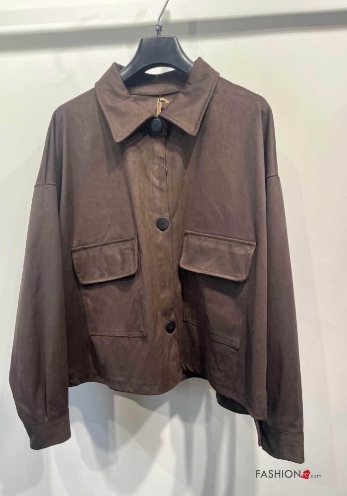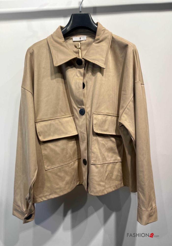 Cappotto maniche lunghe con colletto con bottoni con tasche