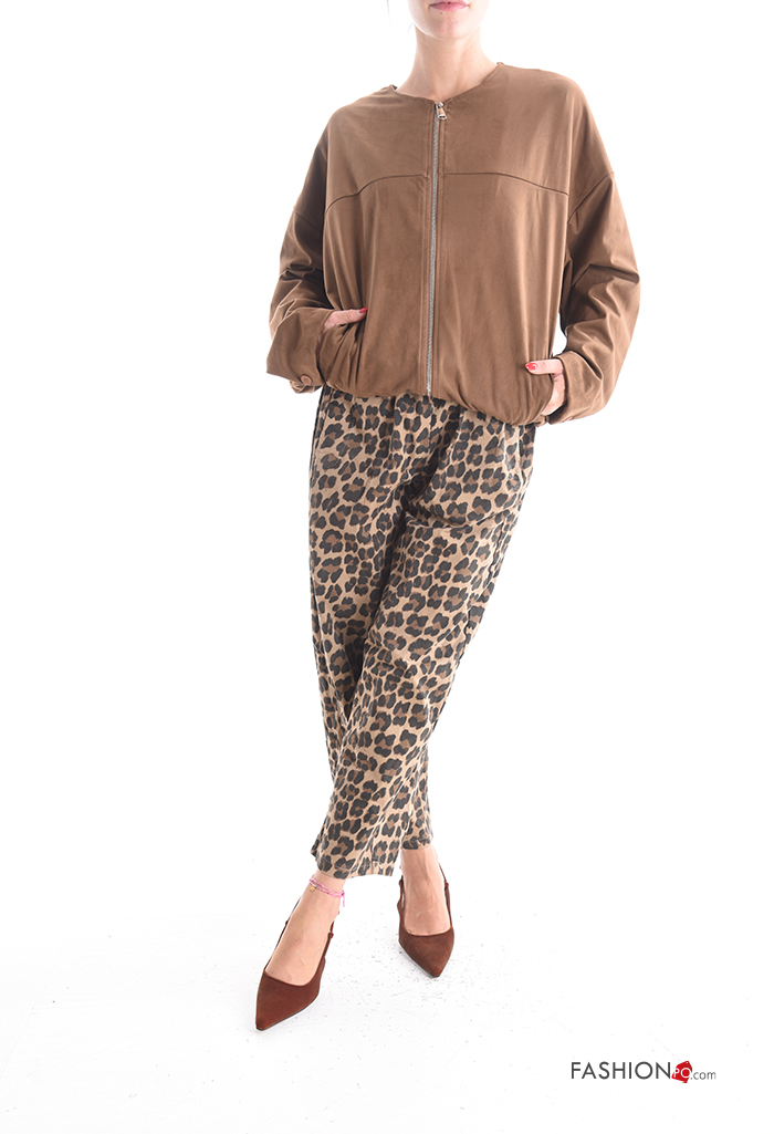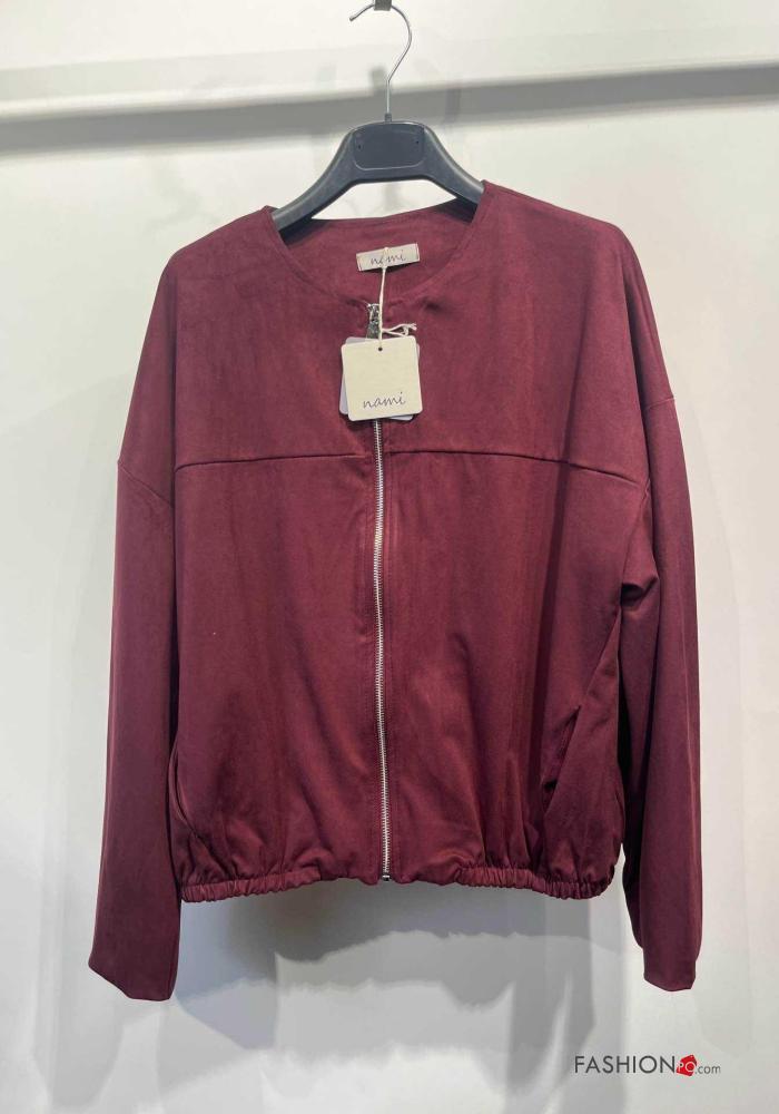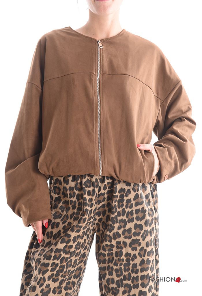 Home > Abbigliamento > Cappotti e Giacche > Giacca girocollo camoscio maniche lunghe con tasche con zip