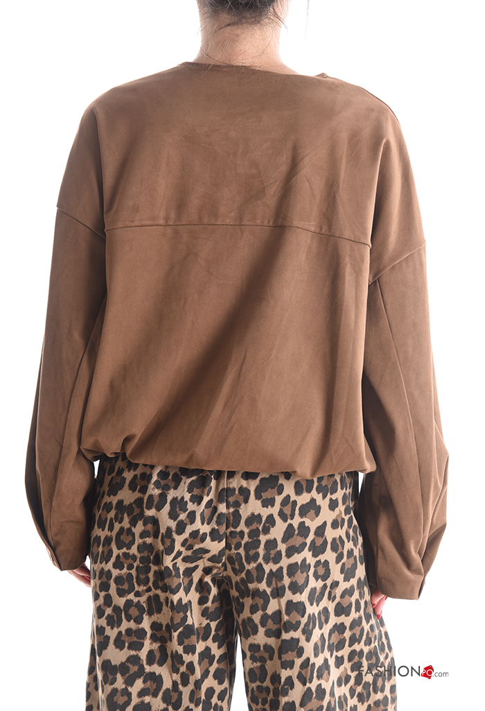 Giacca girocollo camoscio maniche lunghe con tasche con zip