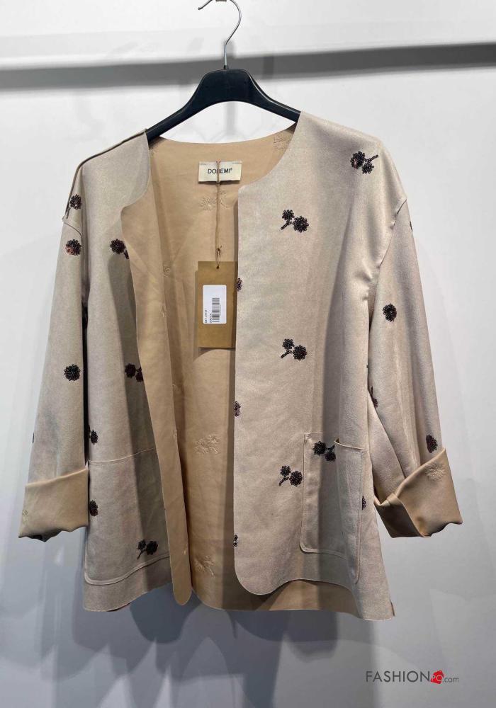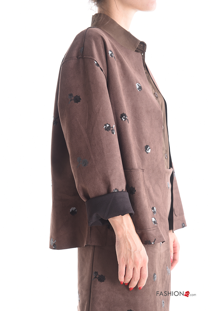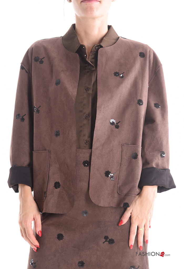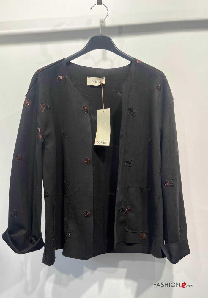 Giacca maniche lunghe girocollo con paillettes con tasche