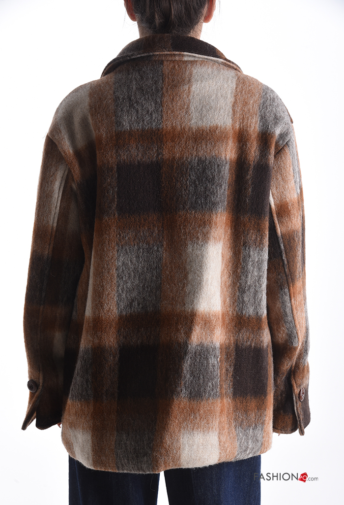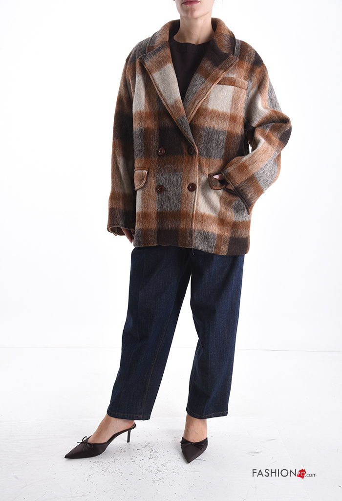 Cappotto in Misto Lana Fantasia tartan con fodera con bottoni con tasche