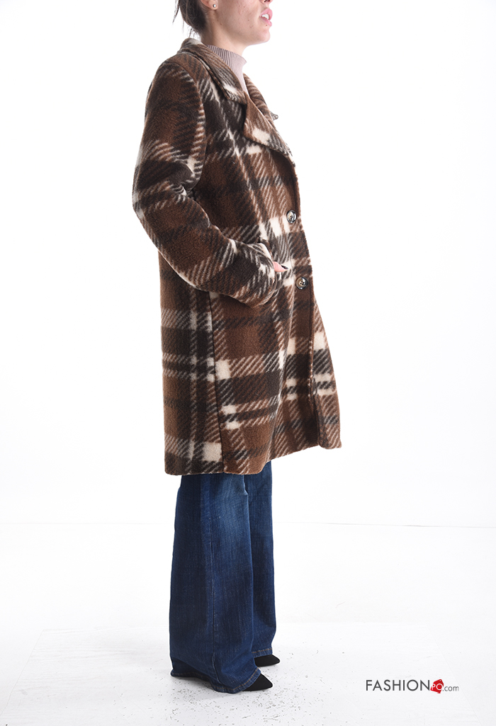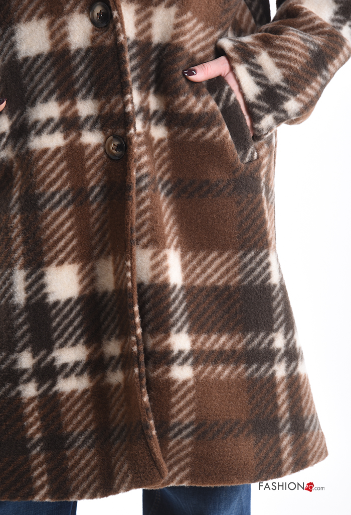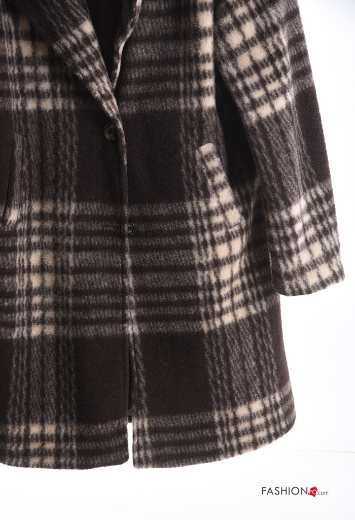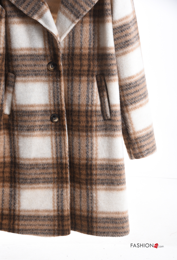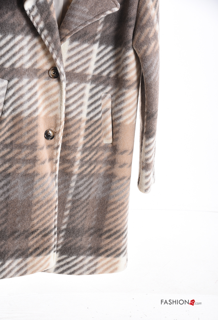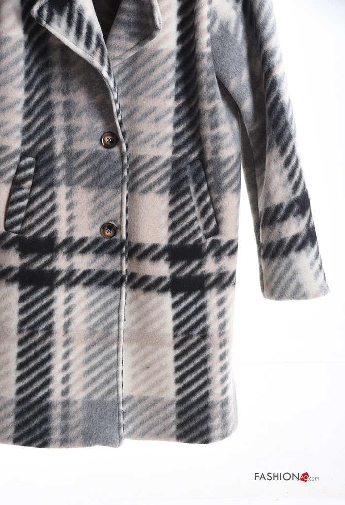 Cappotto maniche lunghe Fantasia tartan con fodera con bottoni con tasche