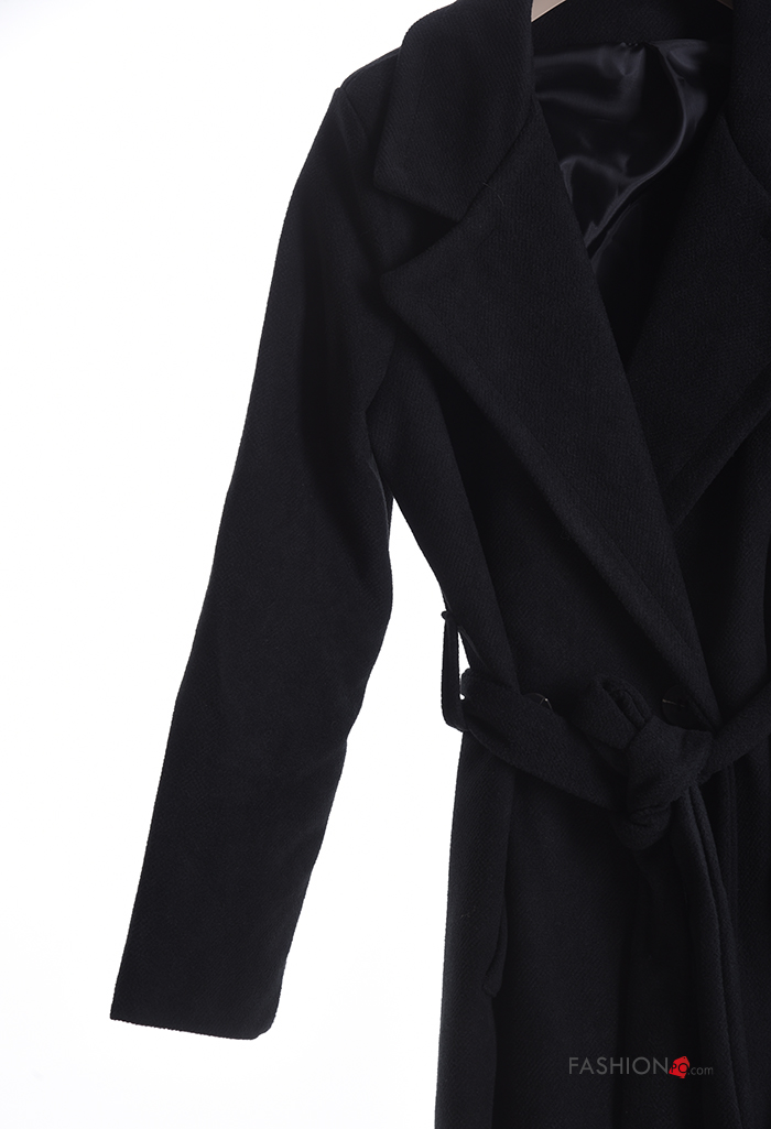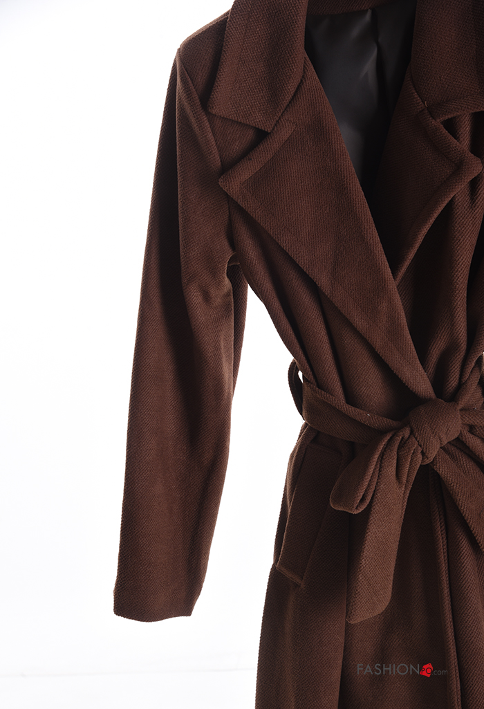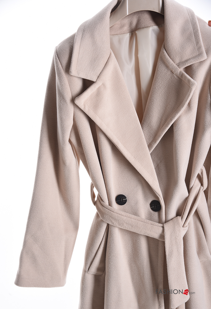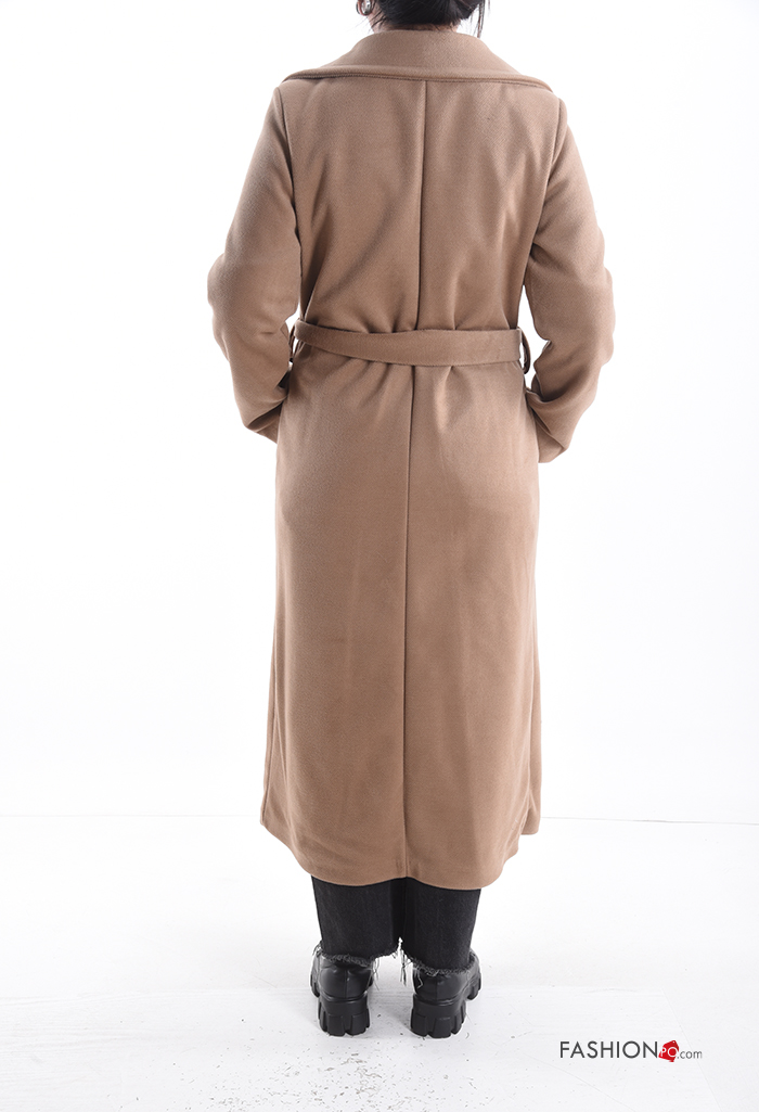 Cappotto maniche lunghe lungo con fodera con tasche con cintura con bottoni