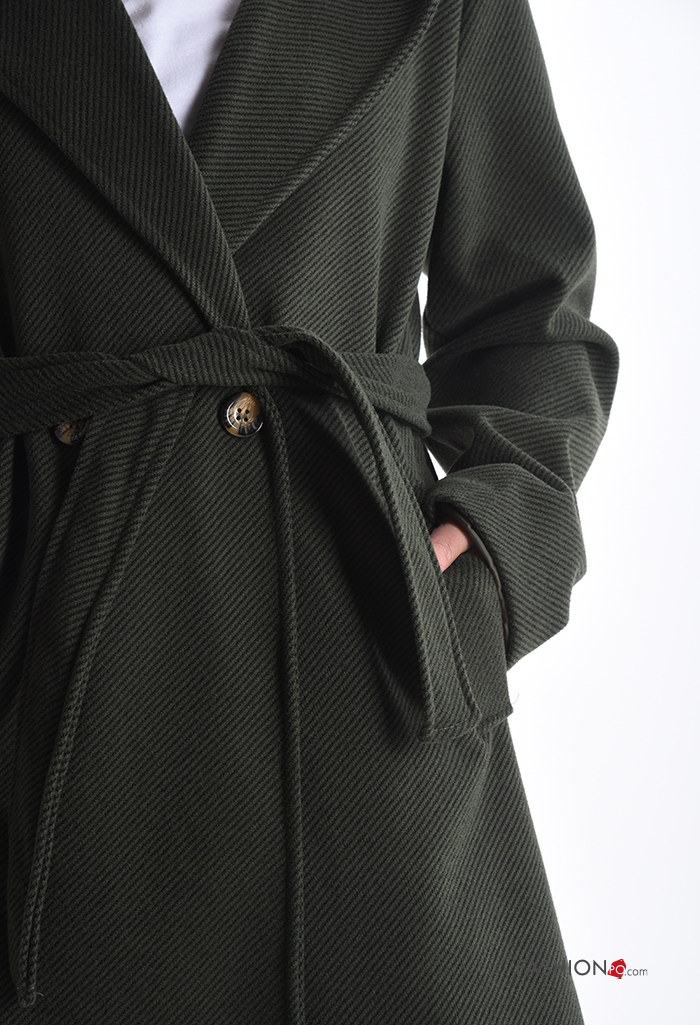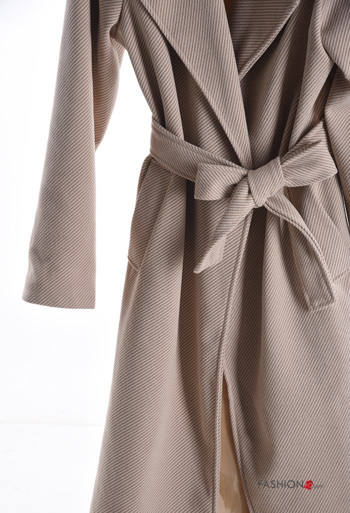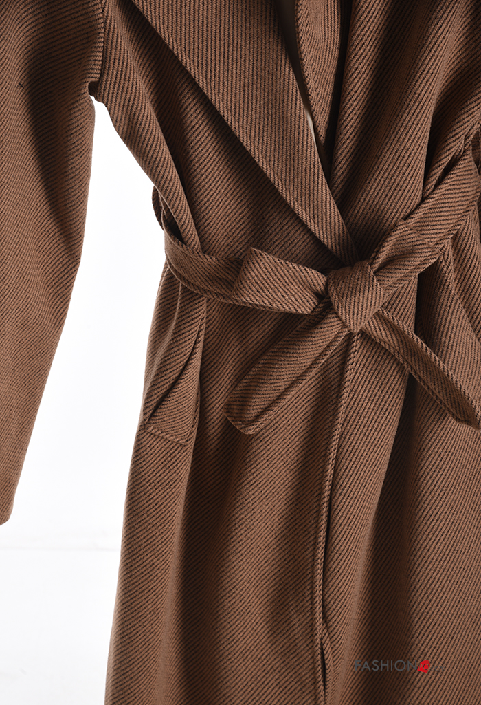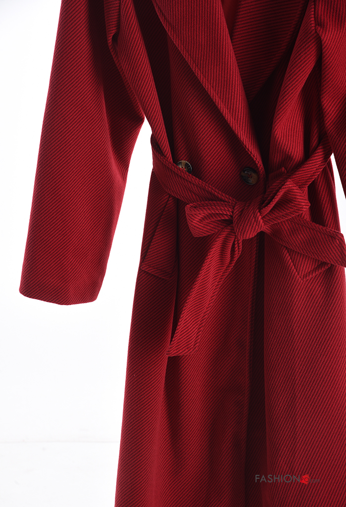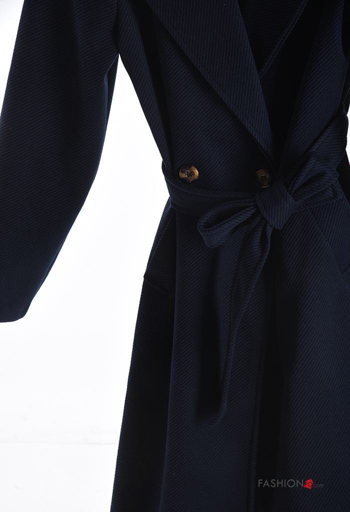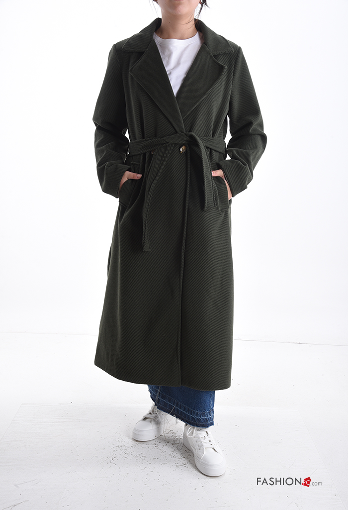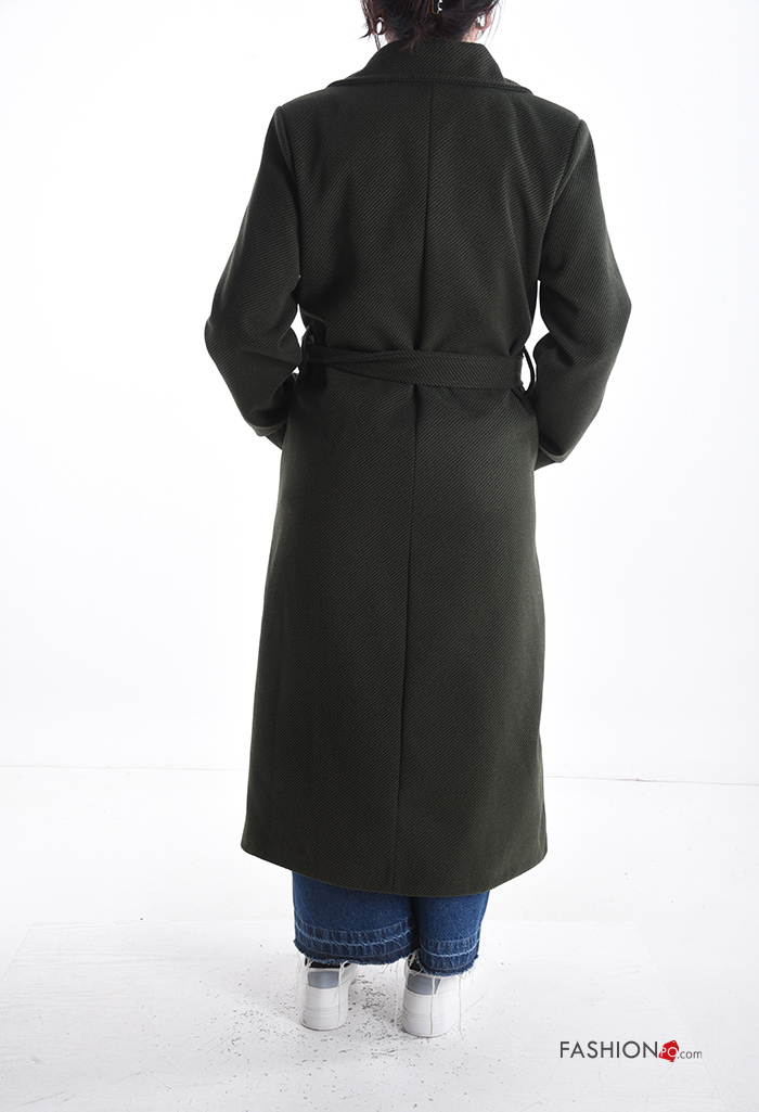 Cappotto lungo con bottoni con cintura con tasche