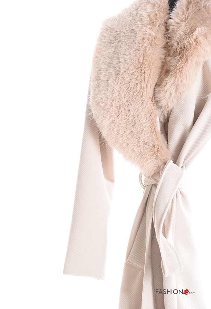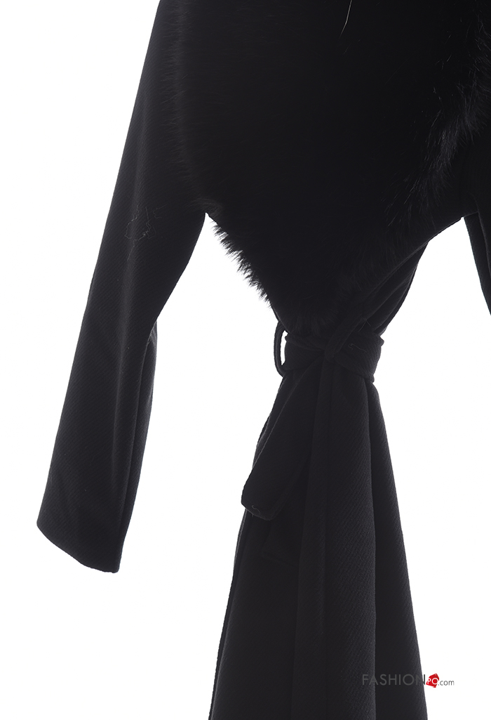 Cappotto pelliccia sintetica con tasche con cintura in stoffa