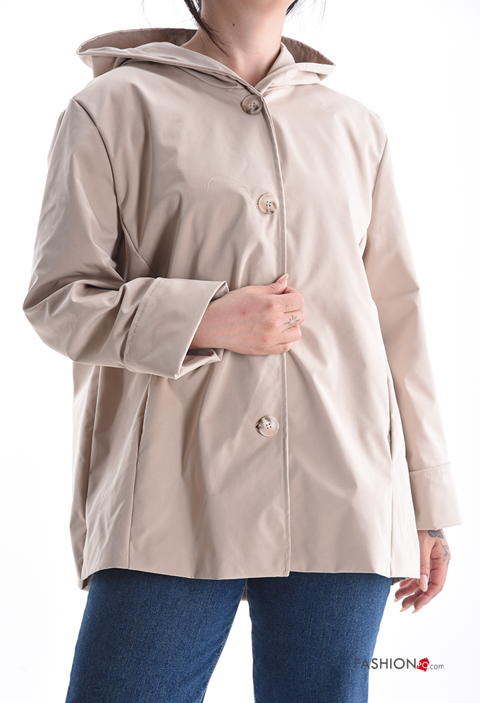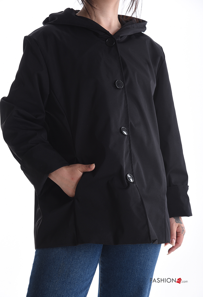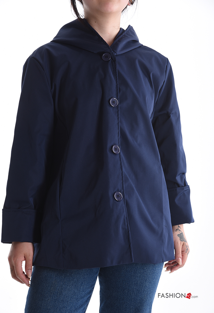 Giacca a vento maniche lunghe con fodera con cappuccio con bottoni con tasche