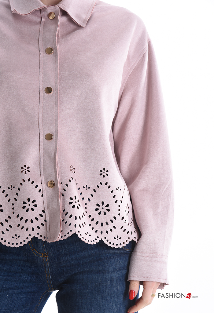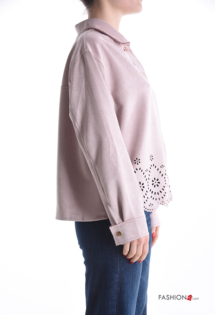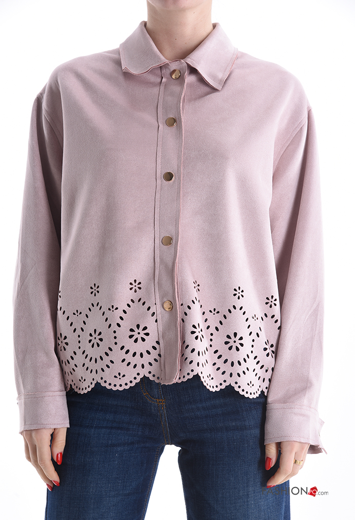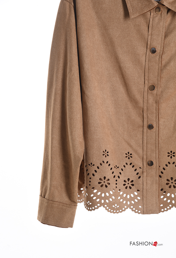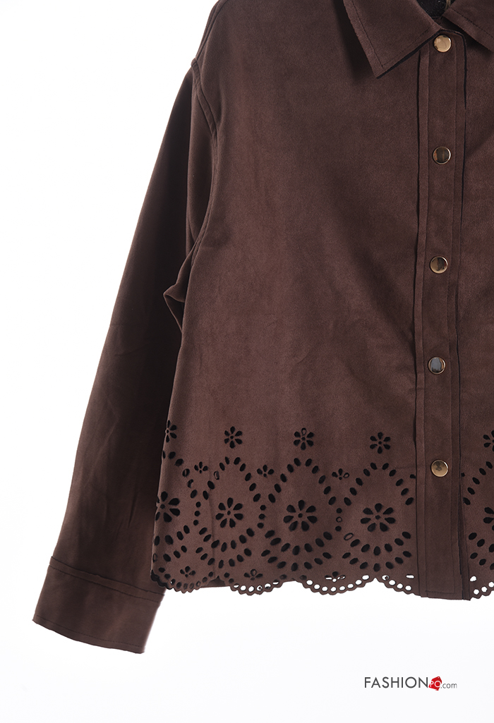 Giacca con colletto camoscio maniche lunghe Fantasia ricamata con bottoni