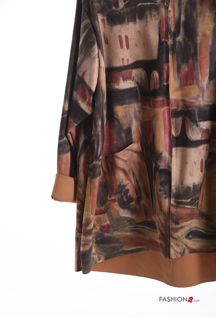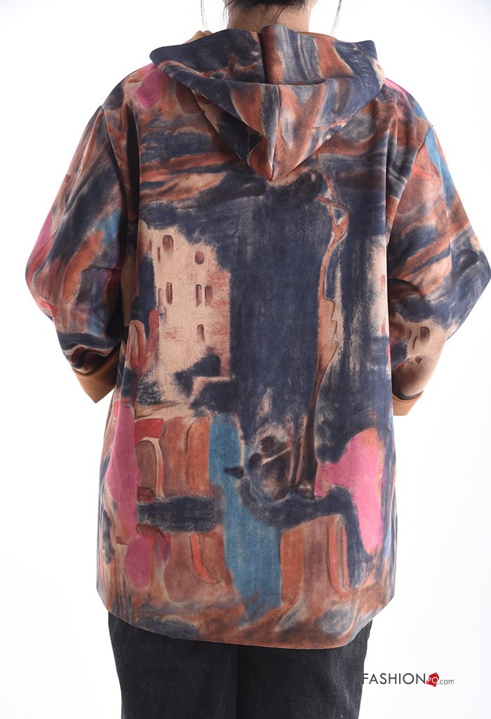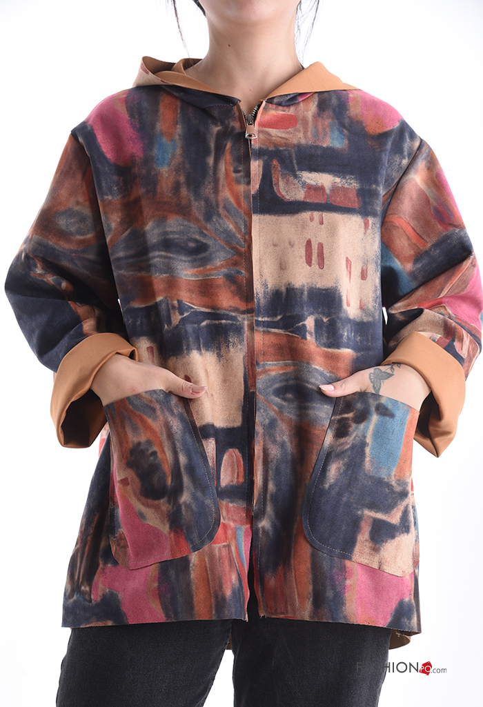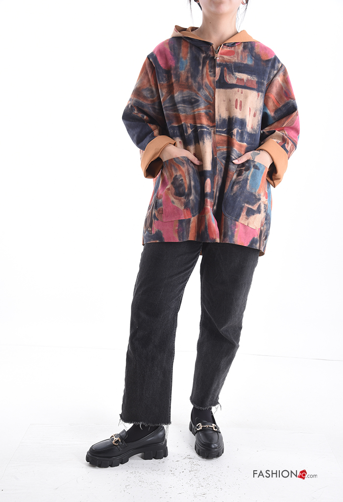 Giacca camoscio maniche lunghe Fantasia astratta senza fodera con tasche con zip con cappuccio