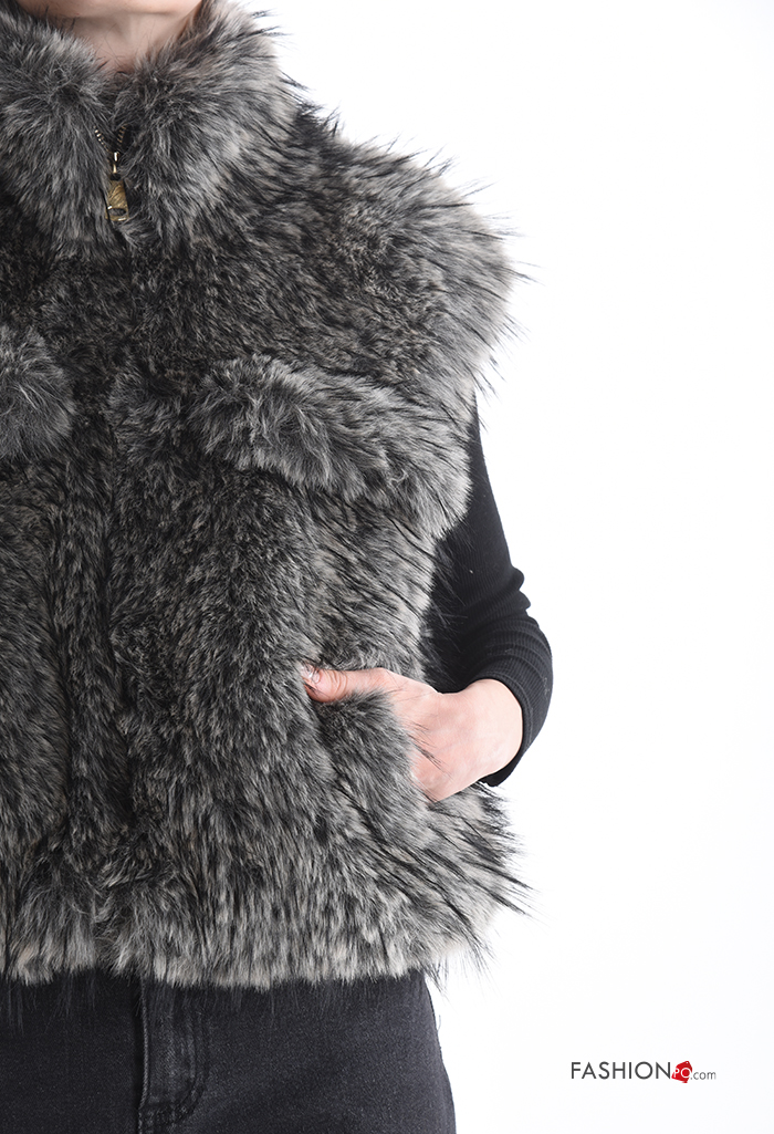 Home > Abbigliamento > Cappotti e Giacche > Smanicato pelliccia sintetica con fodera a collo alto con zip