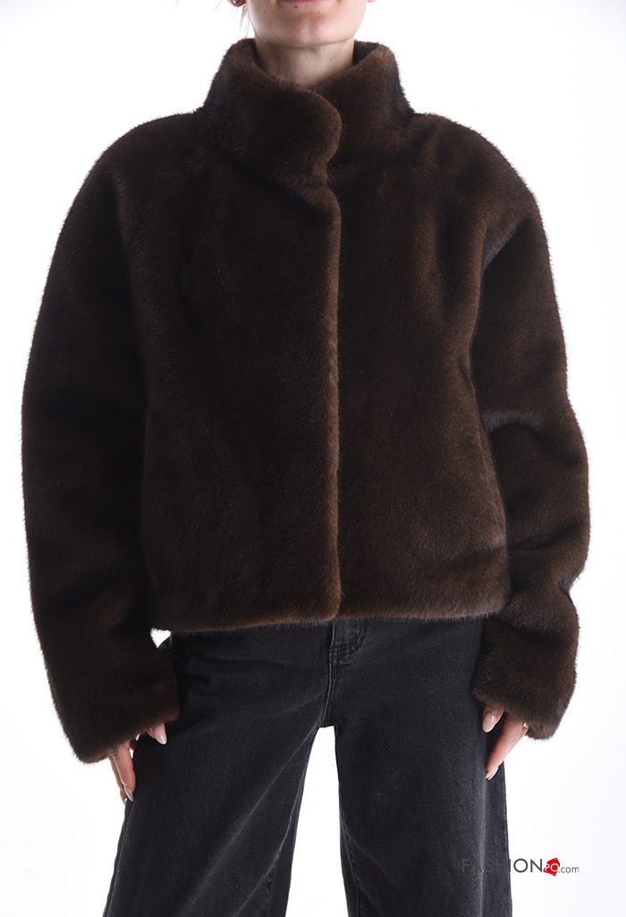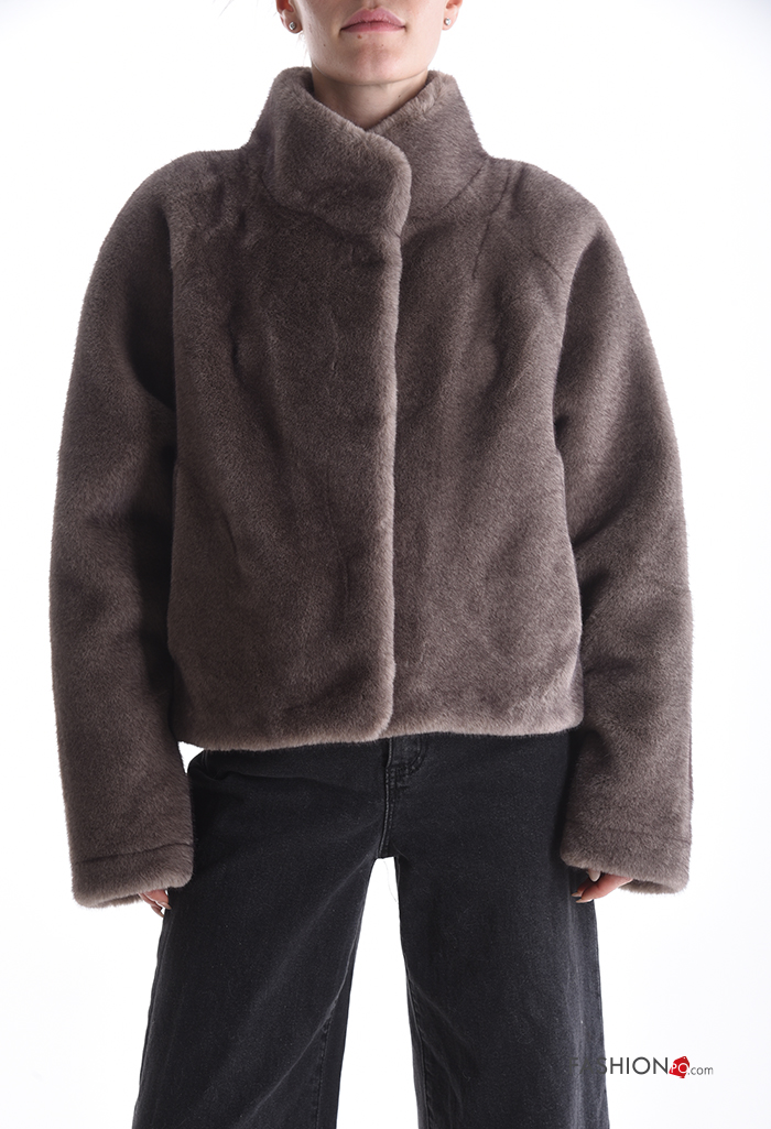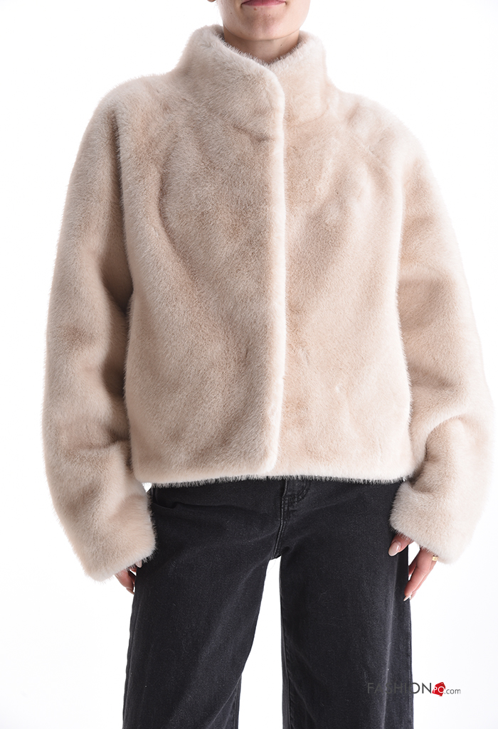 Giacca pelliccia sintetica senza fodera con bottoni con tasche