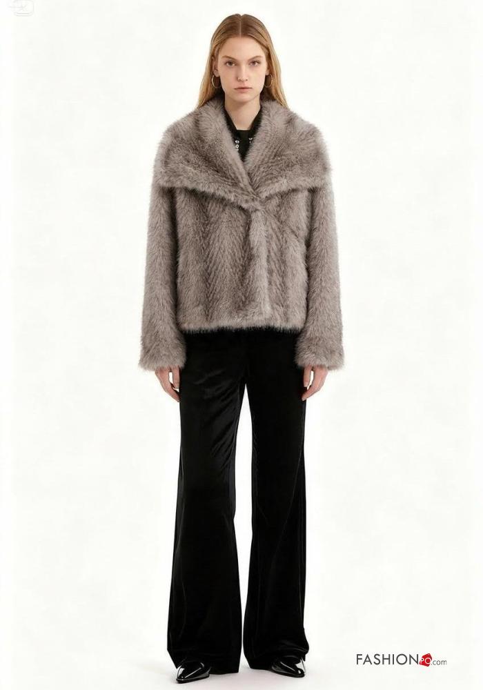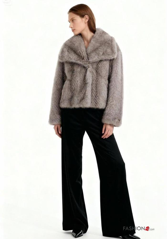 Giacca pelliccia sintetica maniche lunghe con fodera con bottoni con tasche