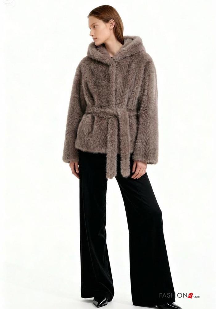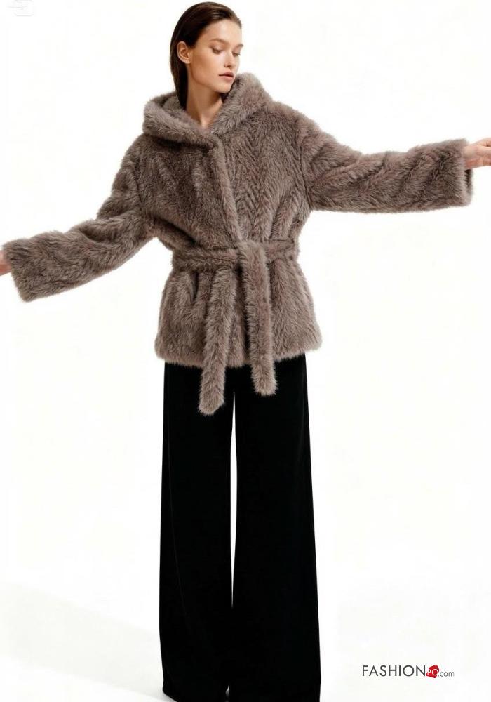Home > Abbigliamento > Cappotti e Giacche > Giacca pelliccia sintetica con fodera con tasche con cintura con bottoni