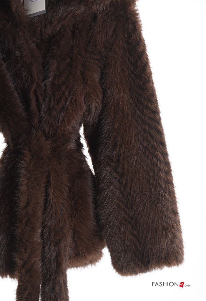 Giacca pelliccia sintetica con fodera con tasche con cintura con bottoni