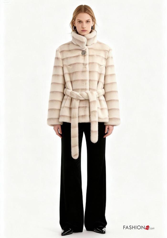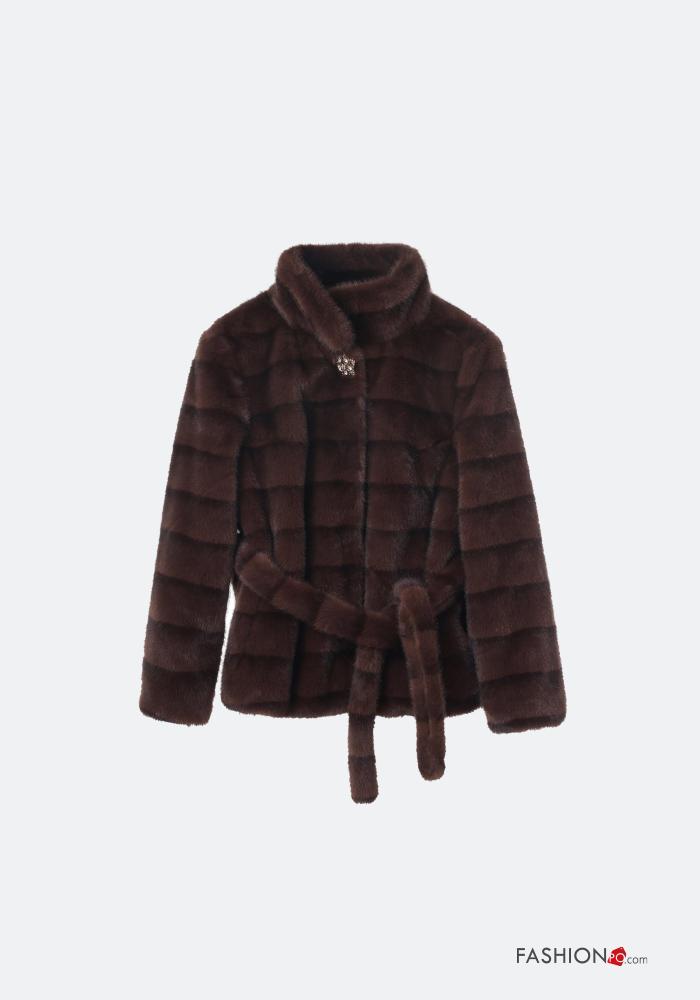 Giacca maniche lunghe con fodera con strass con tasche con cintura a collo alto con bottoni