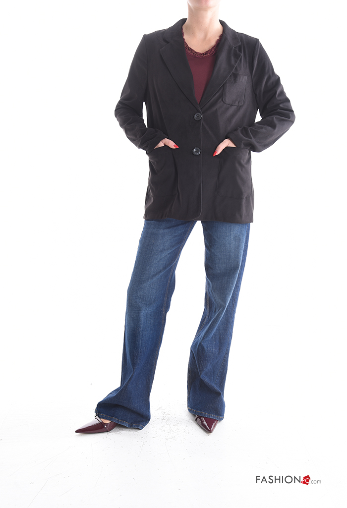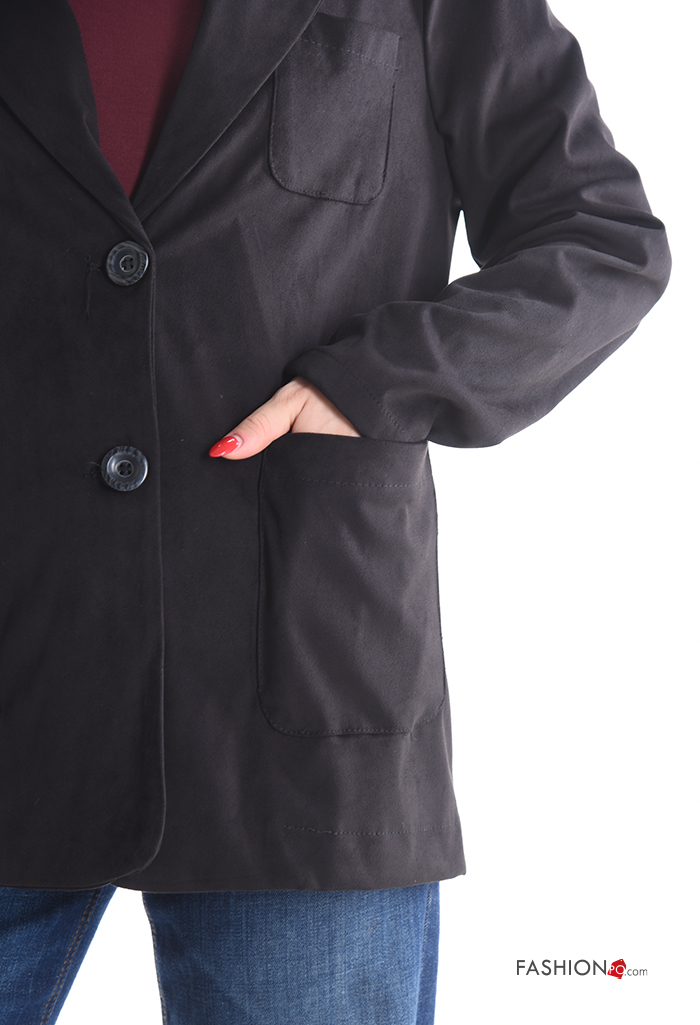 Giacca maniche lunghe senza fodera con bottoni con tasche