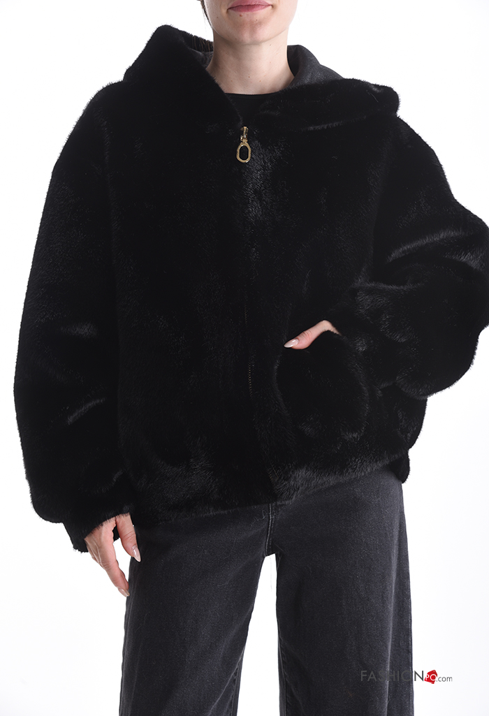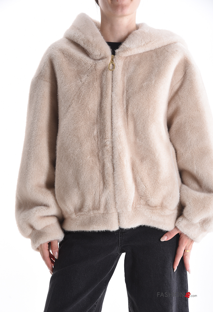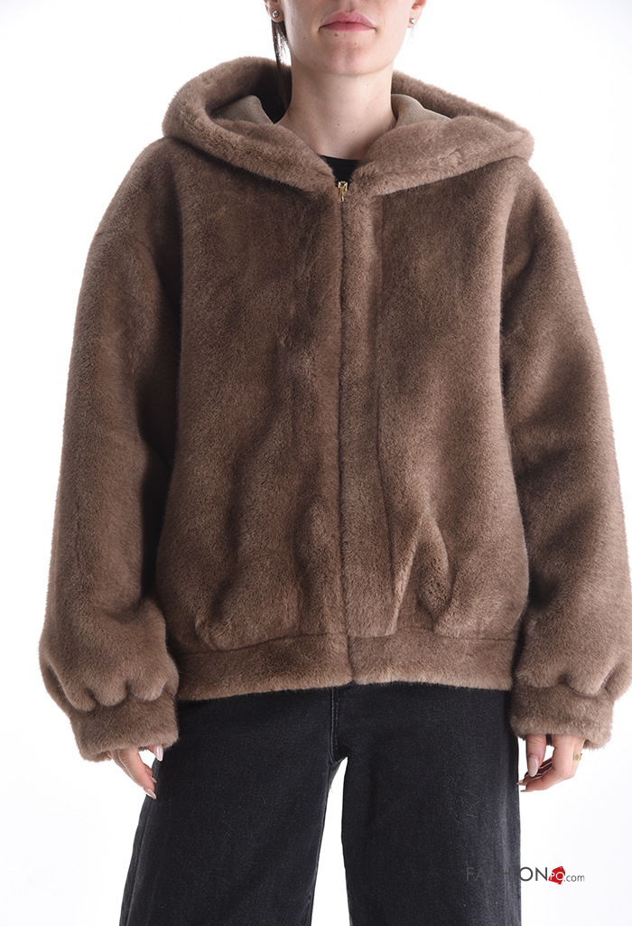 Home > Abbigliamento > Cappotti e Giacche > Giacca pelliccia sintetica con zip con tasche con cappuccio