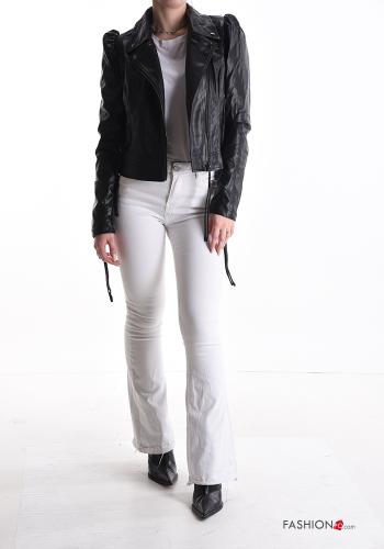 Giacca ecopelle maniche a palloncino con zip