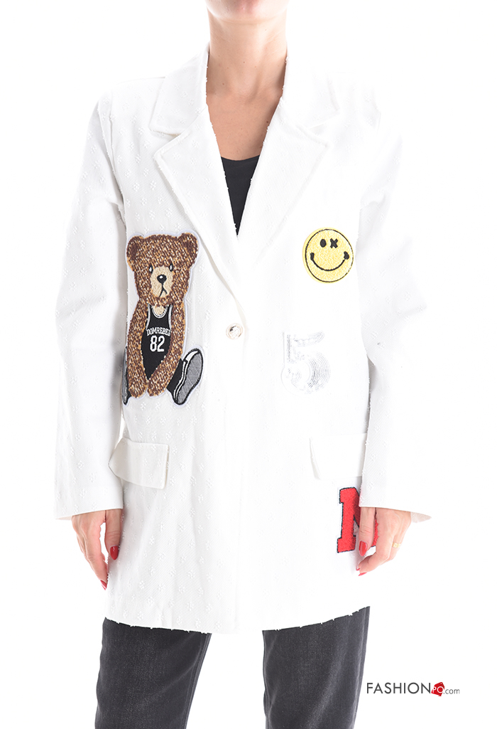 Home > Abbigliamento > Cappotti e Giacche > Giacca in Cotone maniche lunghe Fantasia animali con bottoni