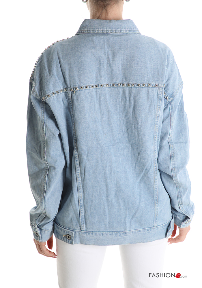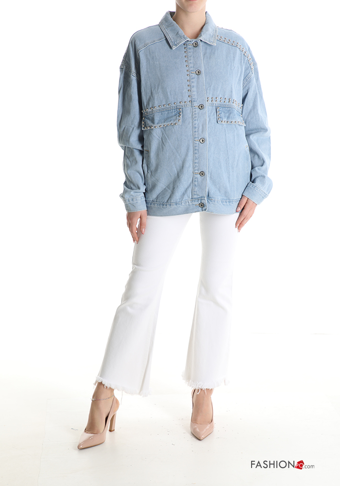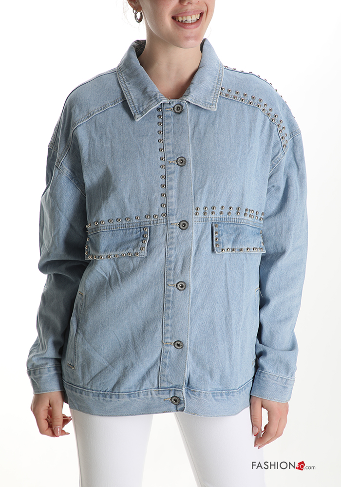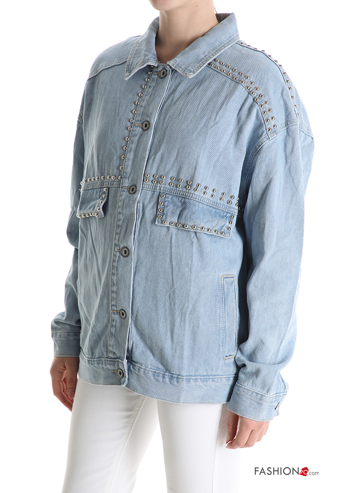 Giacca in Cotone denim con colletto con tasche con bottoni con borchie