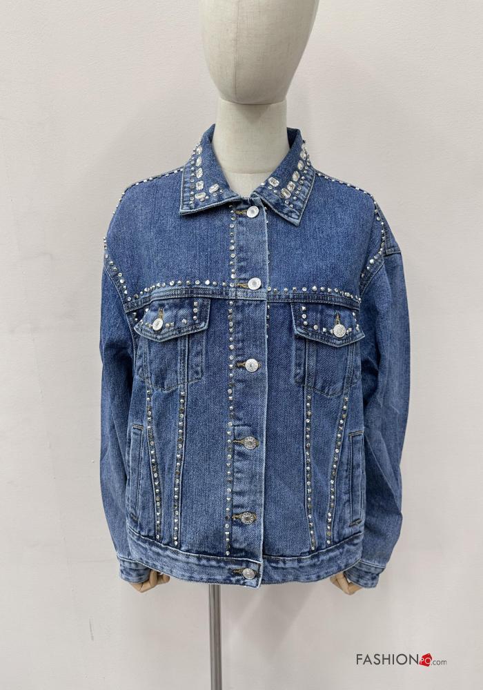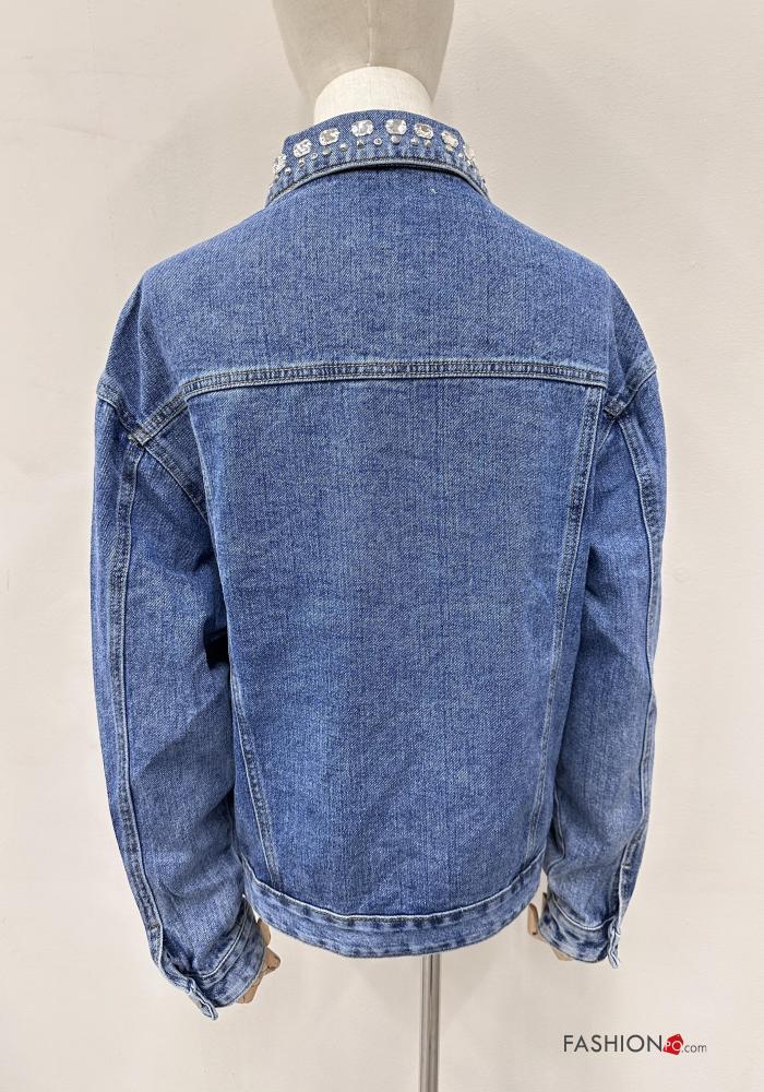 Home > Abbigliamento > Cappotti e Giacche > Giacca in Cotone con colletto denim maniche lunghe con bottoni con strass