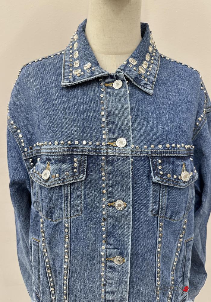 Giacca in Cotone con colletto denim maniche lunghe con bottoni con strass
