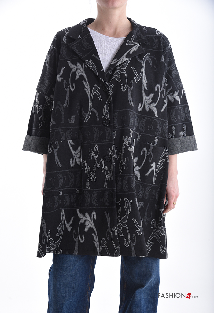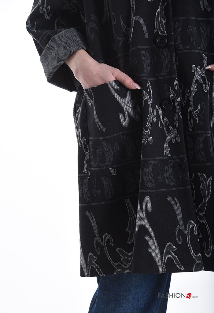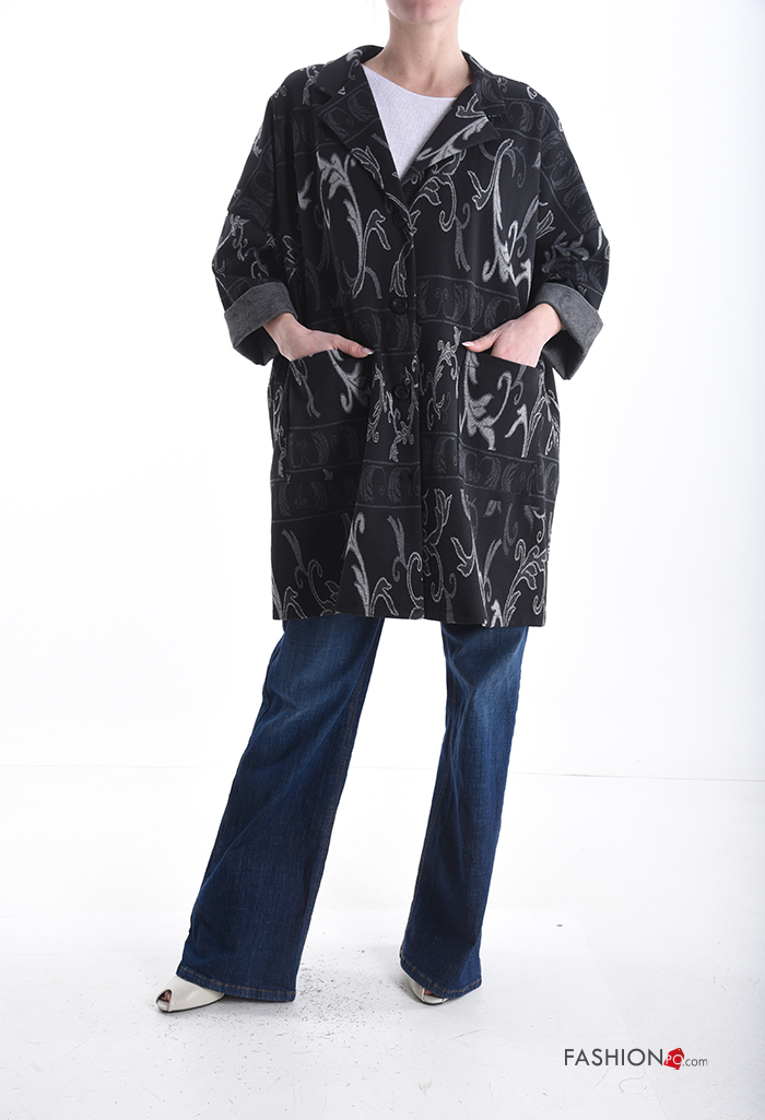 Giacca in Cotone oversize lungo Fantasia jacquard con bottoni con tasche