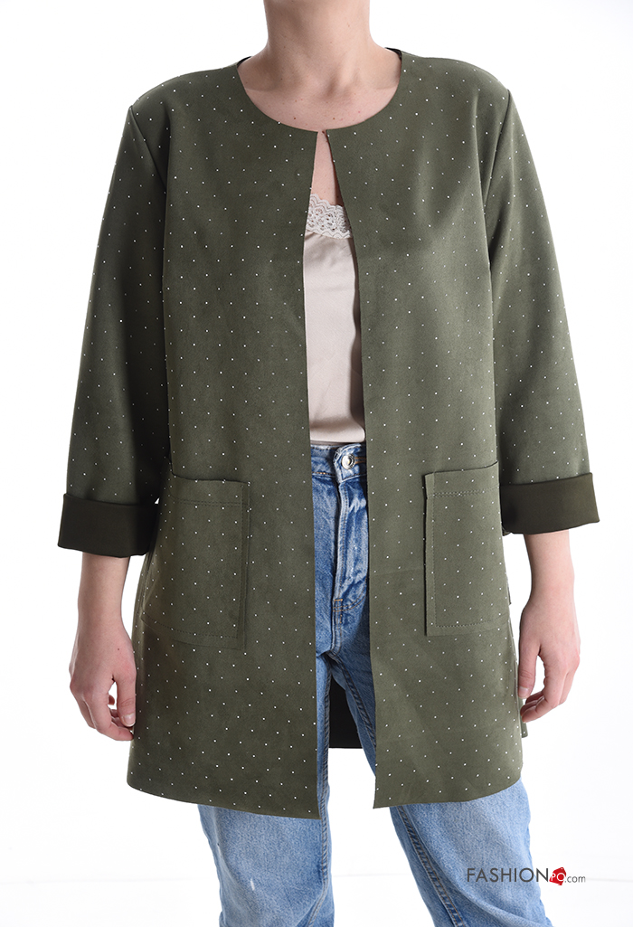 Giacca maniche lunghe con tasche con strass