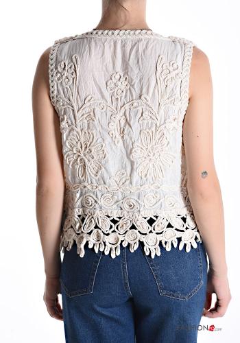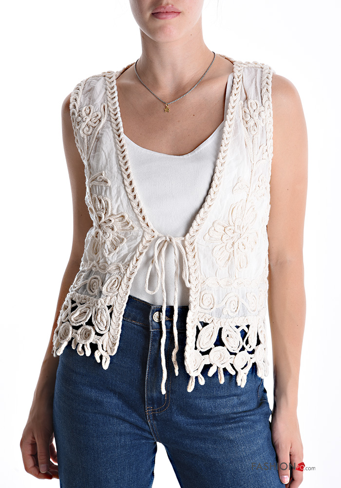 Home > Abbigliamento > Cappotti e Giacche > Smanicato in Cotone corto Fantasia ricamata con corda
