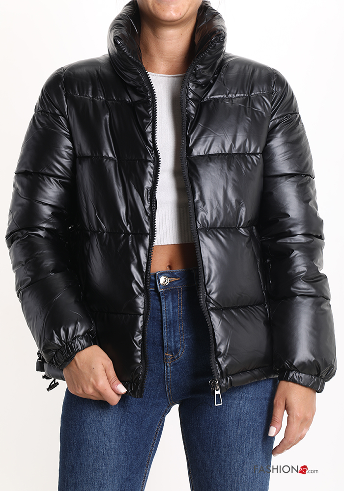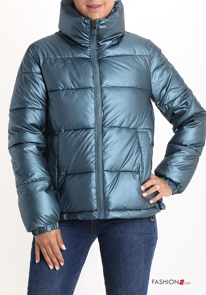 Piumino con tasche a collo alto con zip