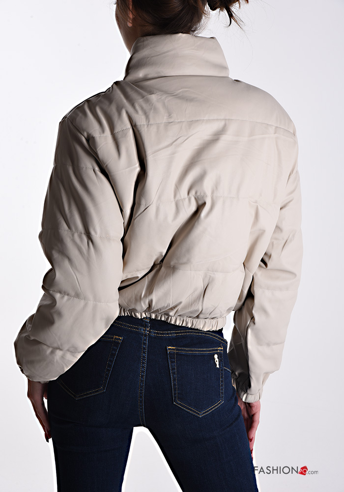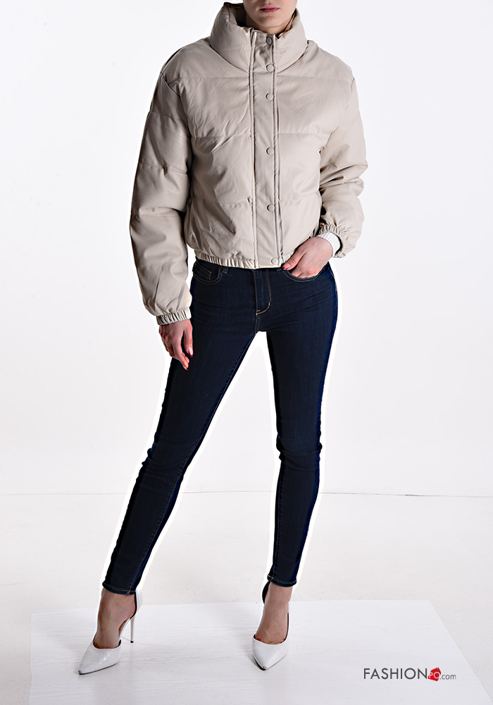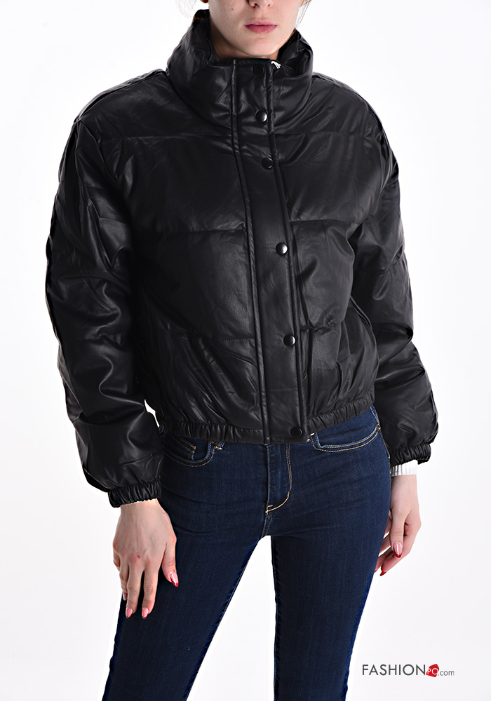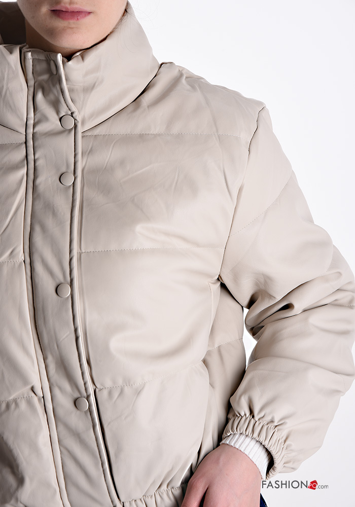 Piumino ecopelle con fodera con zip con bottoni con tasche