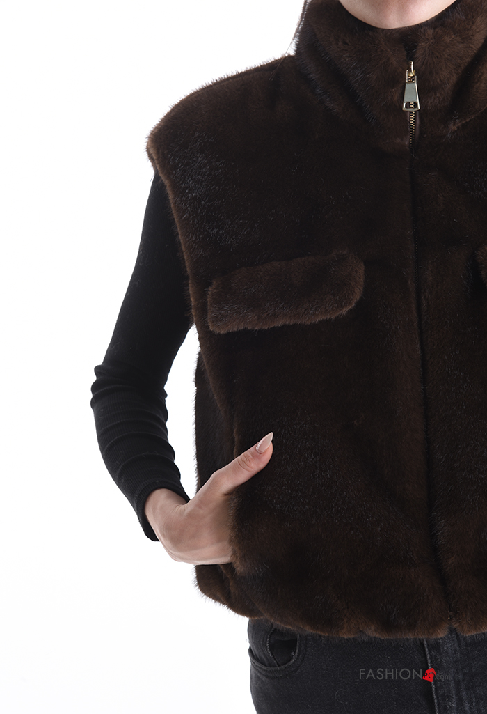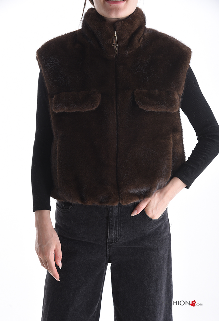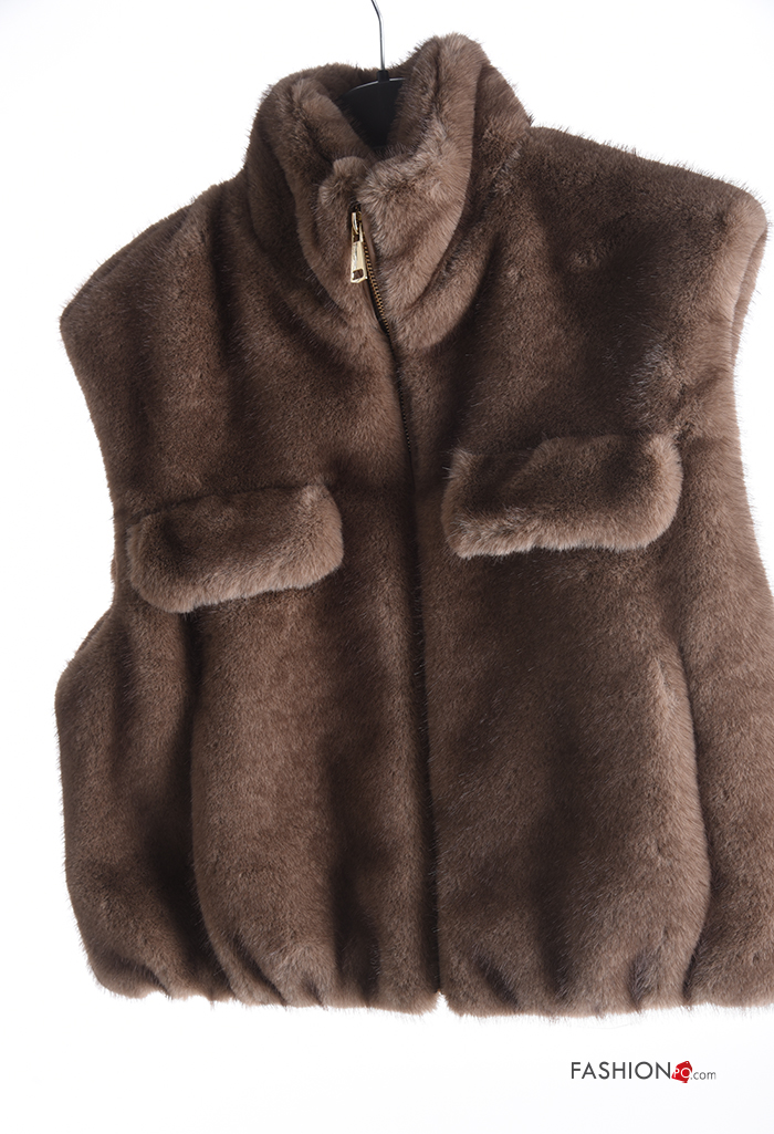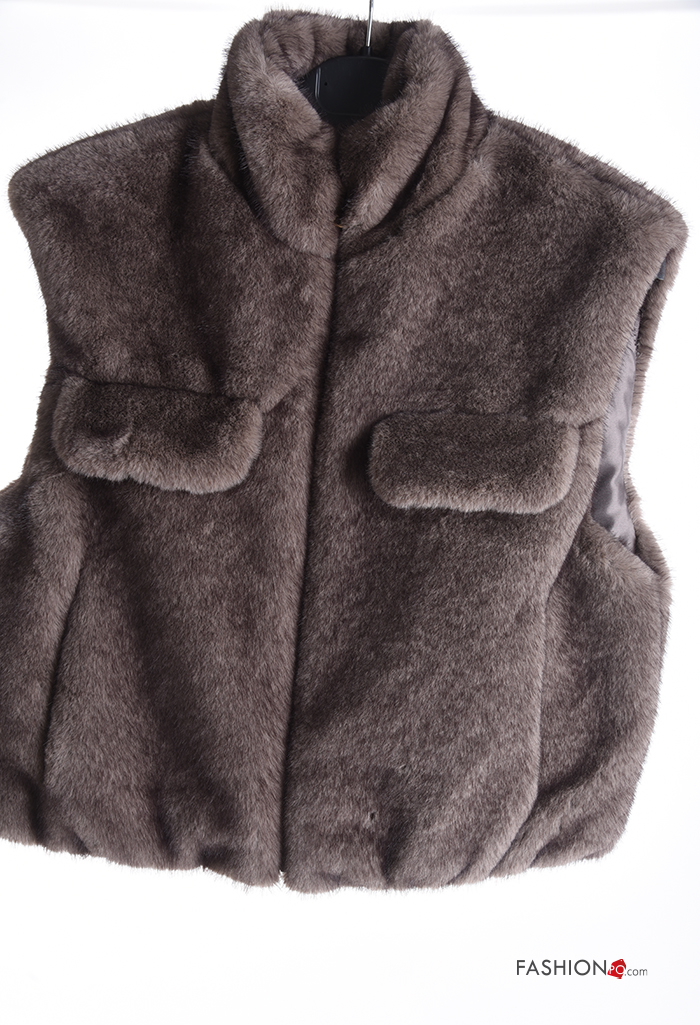 Home > Abbigliamento > Cappotti e Giacche > Smanicato pelliccia sintetica con fodera con tasche con zip