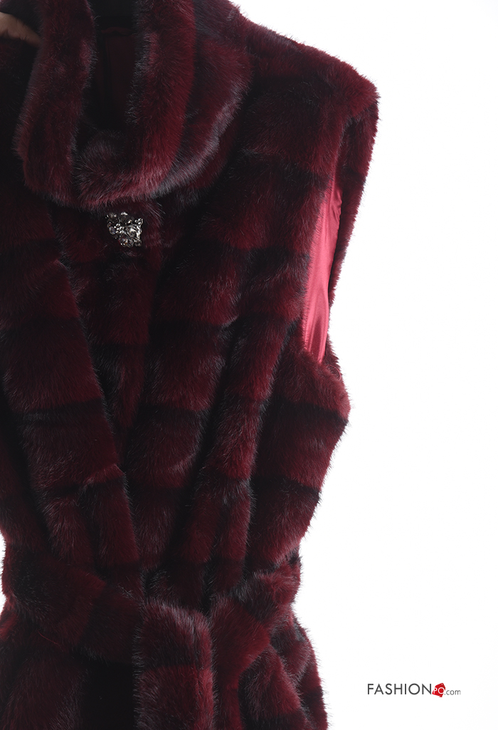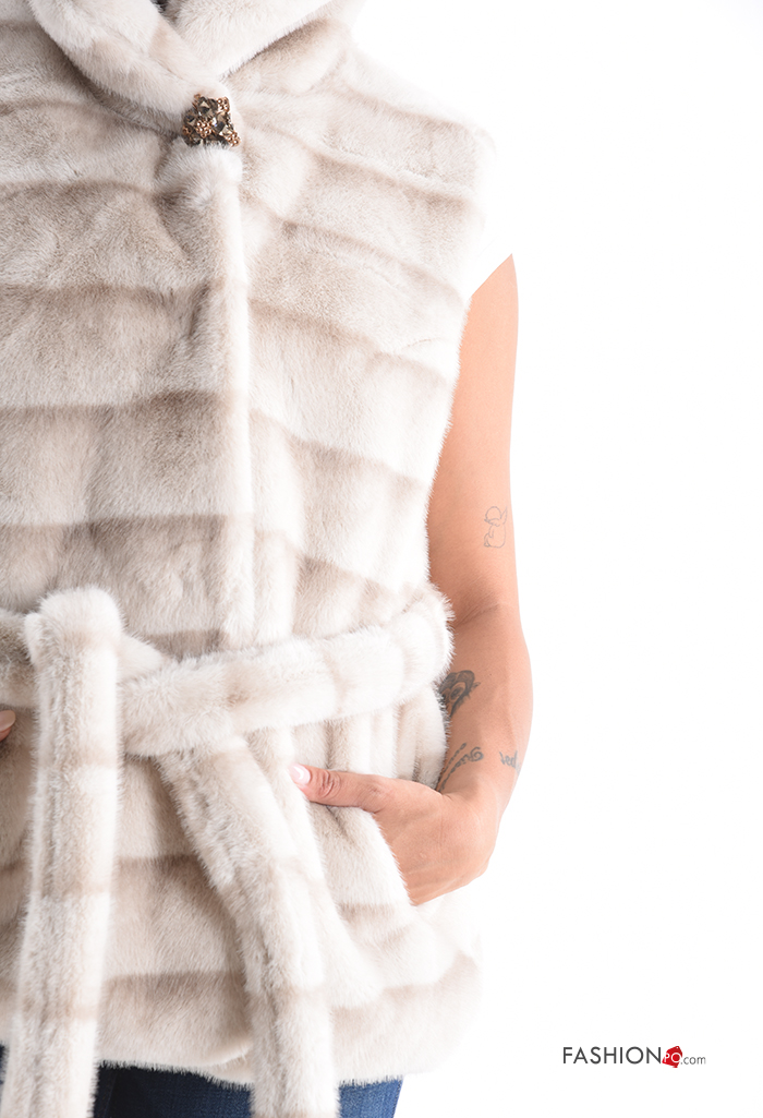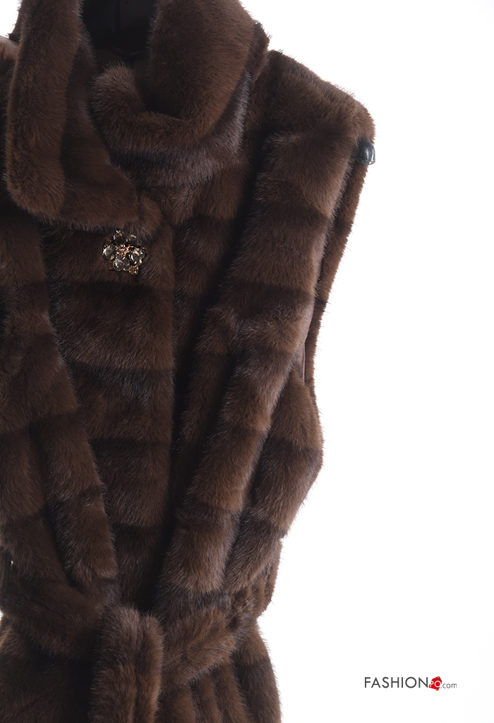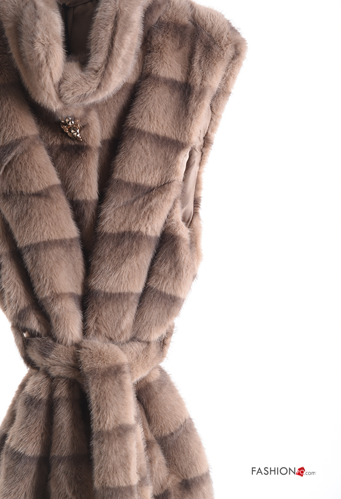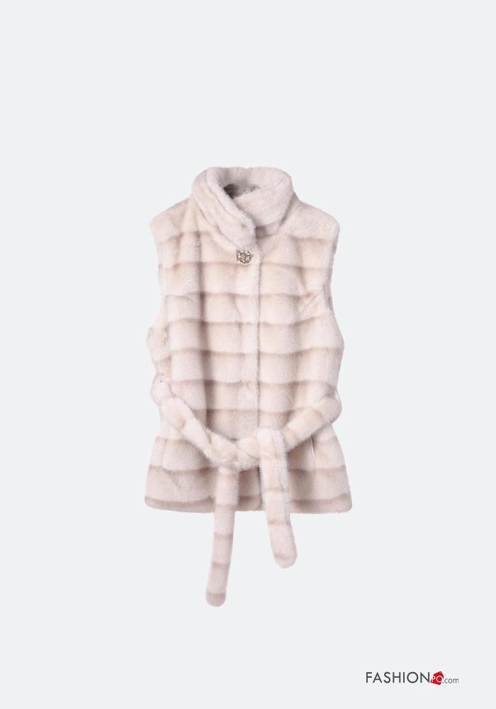 Smanicato pelliccia sintetica con fodera con strass con tasche con cintura a collo alto con bottoni