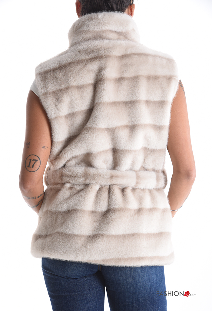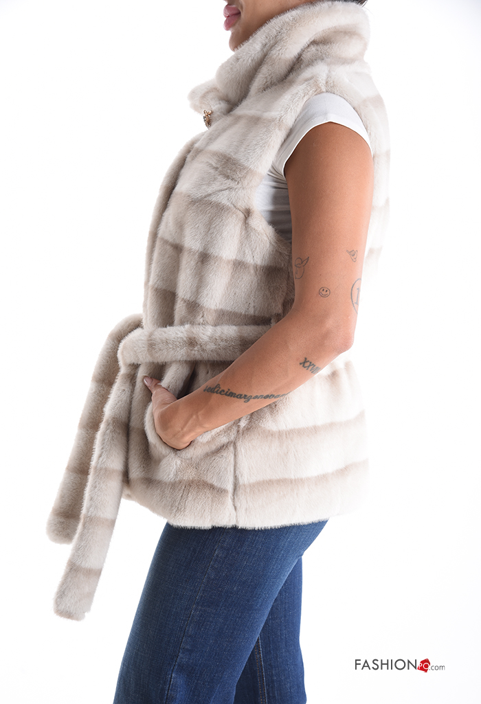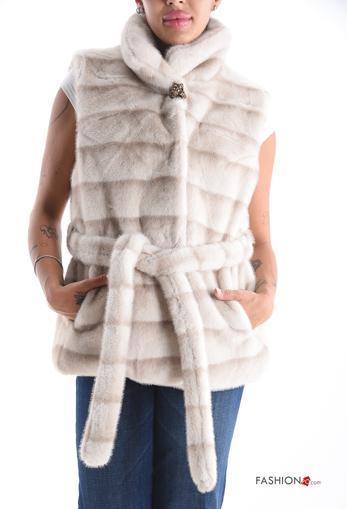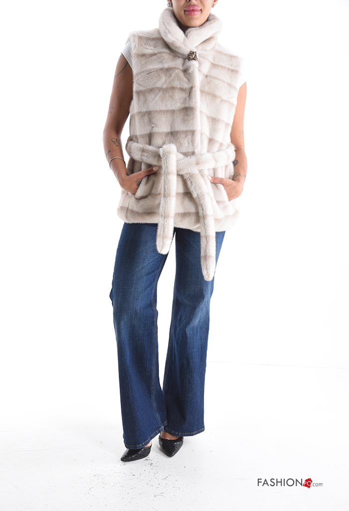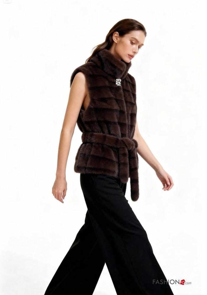 Smanicato pelliccia sintetica con fodera con strass con tasche con cintura a collo alto con bottoni