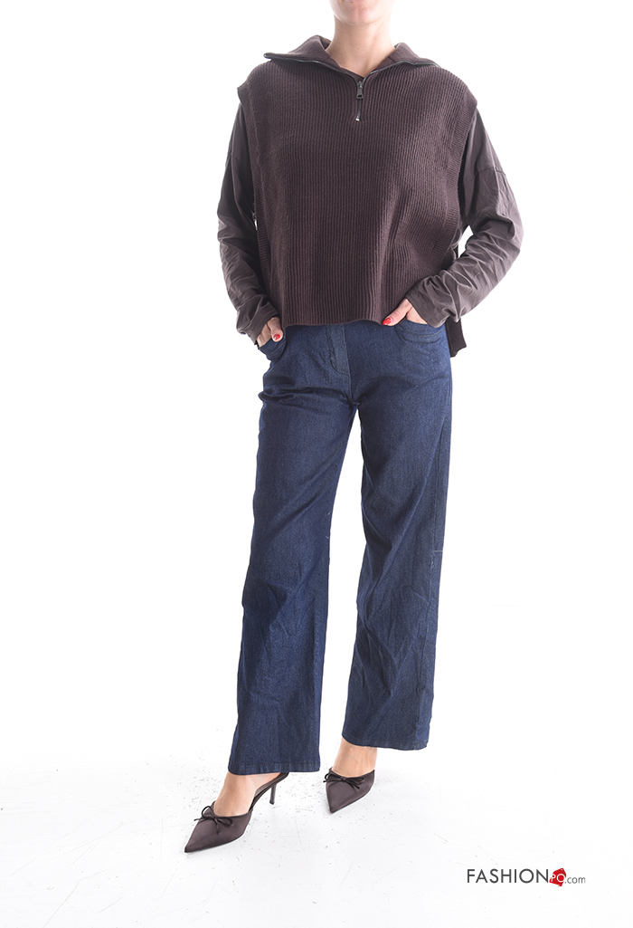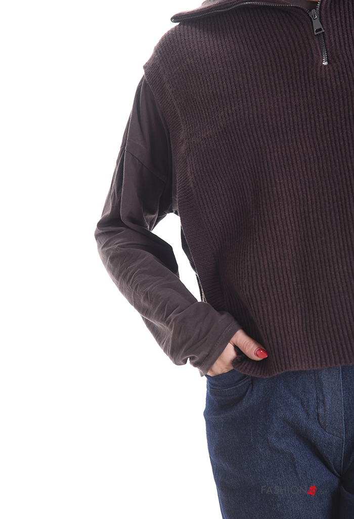 Smanicato costine con colletto con zip