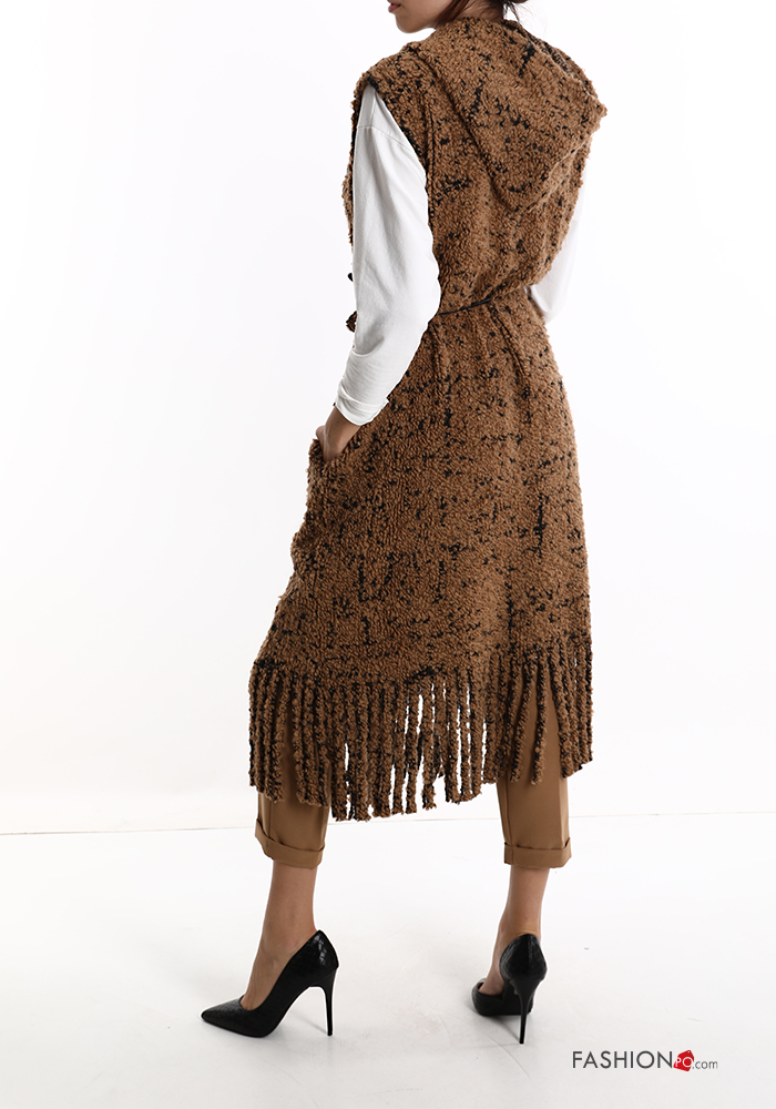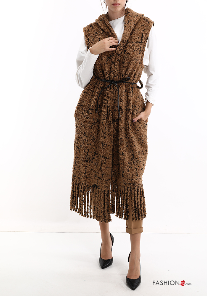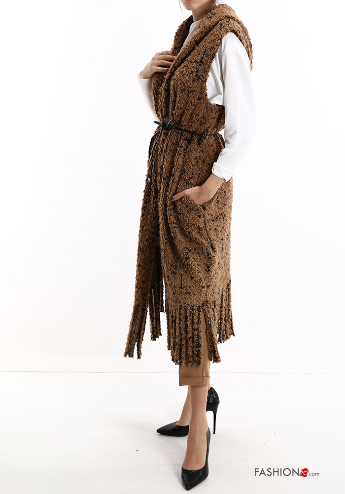 Home > Abbigliamento > Cappotti e Giacche > Smanicato in Misto Lana con tasche con cintura con frange