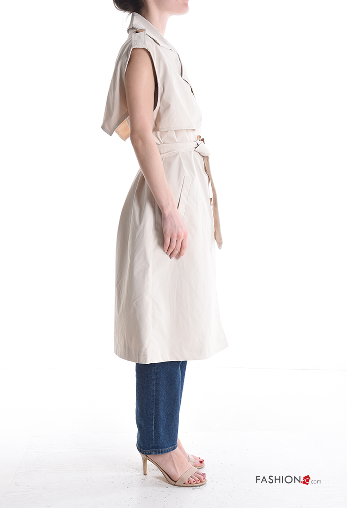 Trench con fibbia senza maniche con fodera con cintura con tasche