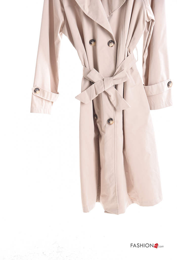 Trench doppio petto maniche lunghe con cintura in stoffa senza fodera con bottoni con tasche
