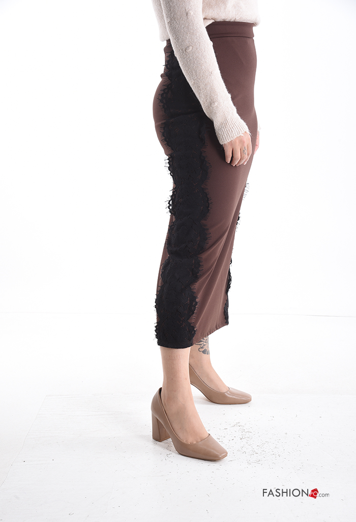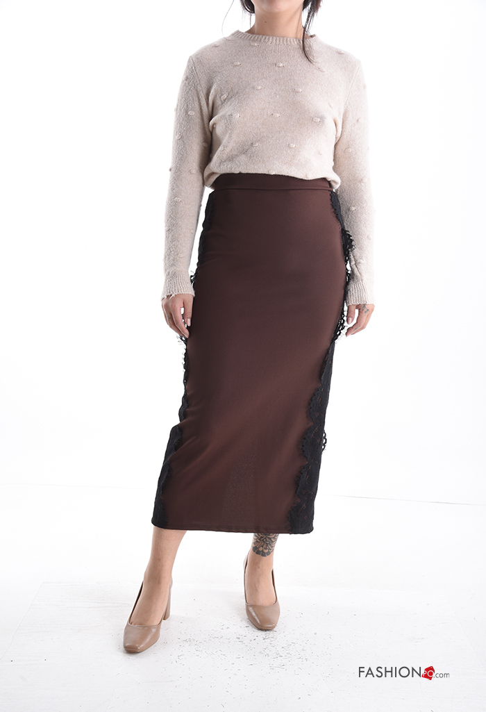Gonna pizzo Longuette con spacco con zip con elastico