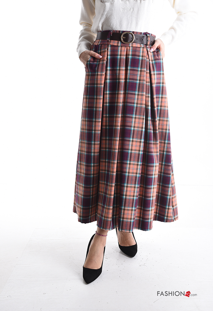 Home > Abbigliamento > Gonne > Gonna lungo Fantasia tartan con cintura con tasche
