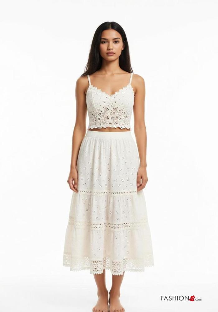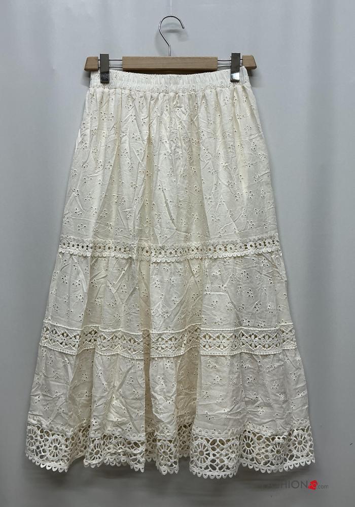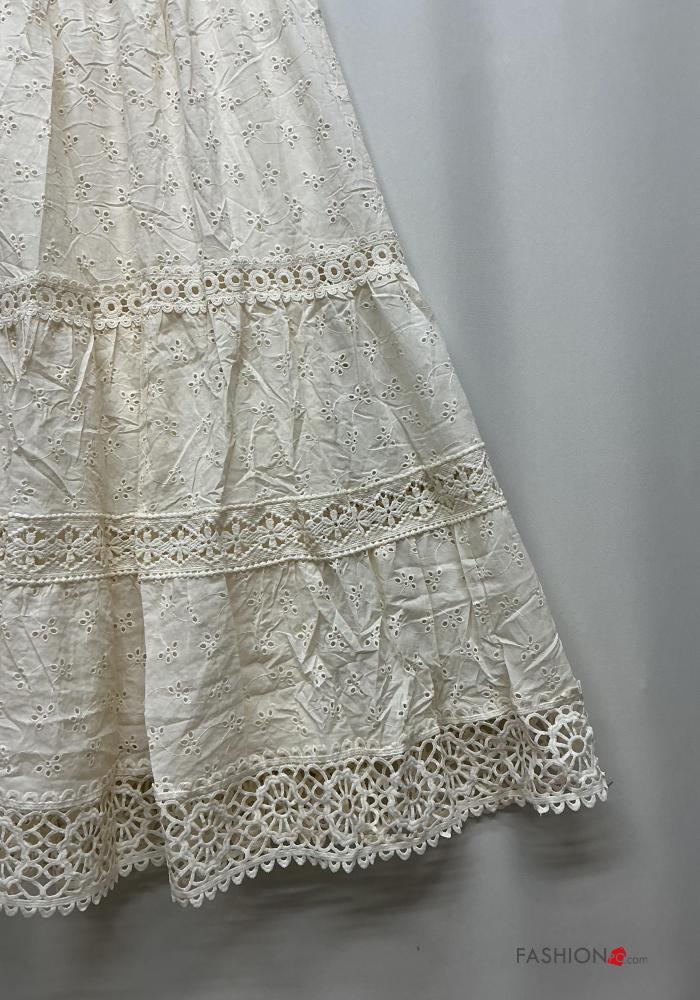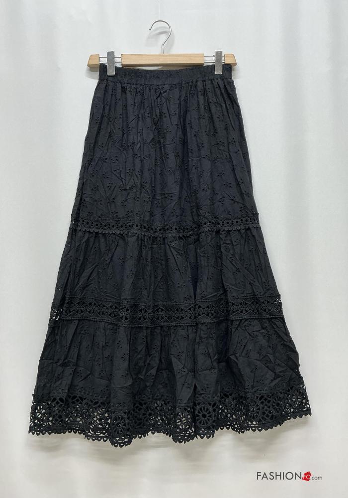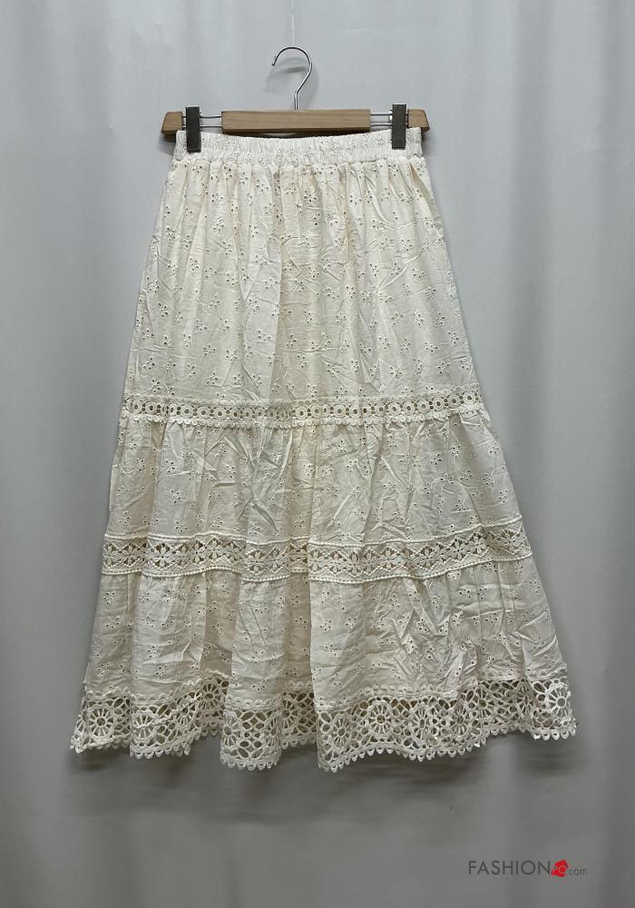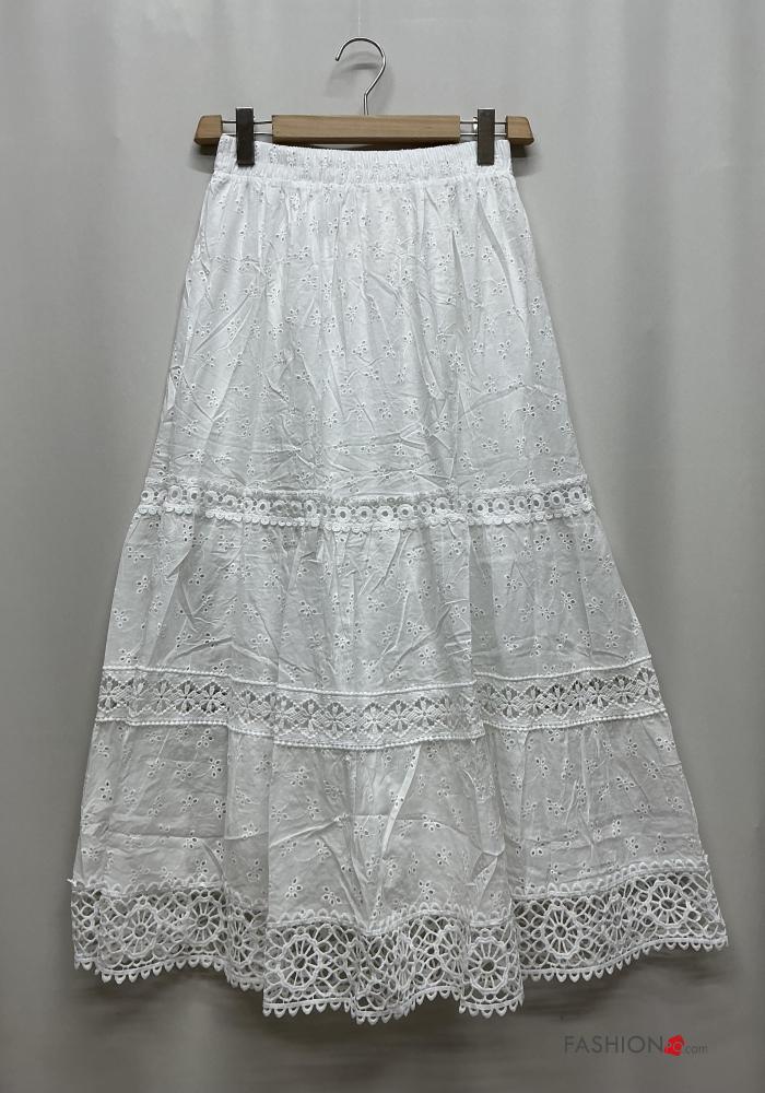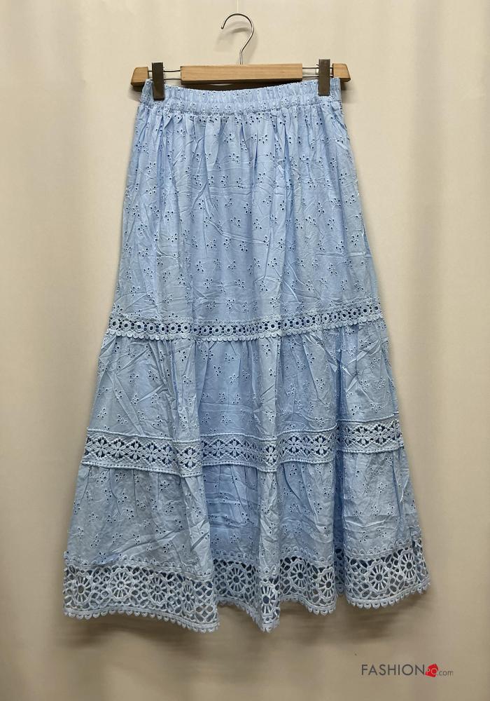 Gonna in Cotone Fantasia ricamata in pizzo sangallo con balze con elastico
