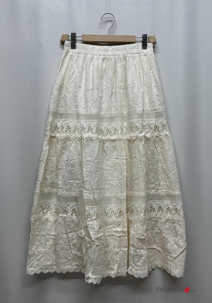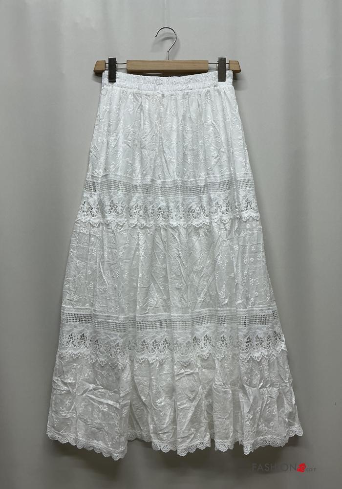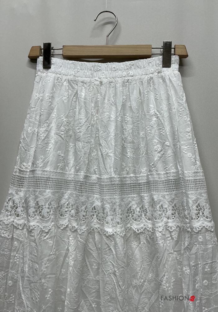 Home > Abbigliamento > Gonne > Gonna in Cotone pizzo Fantasia ricamata con balze con elastico