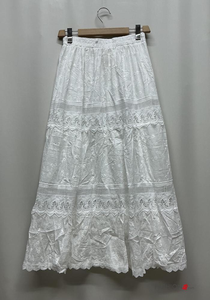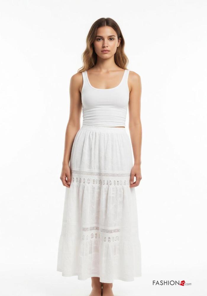 Gonna in Cotone pizzo Fantasia ricamata con balze con elastico