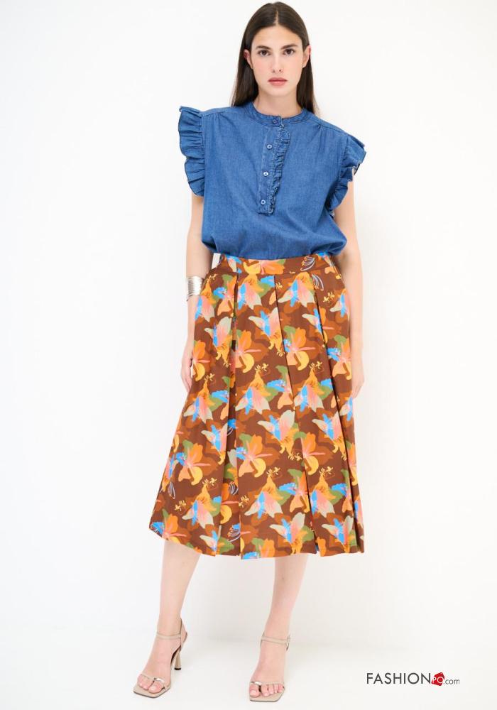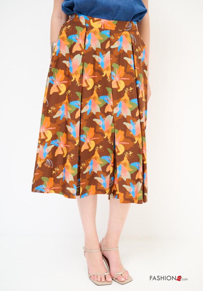 Home > Abbigliamento > Gonne > Gonna in Cotone a ruota Fantasia floreale con tasche con elastico