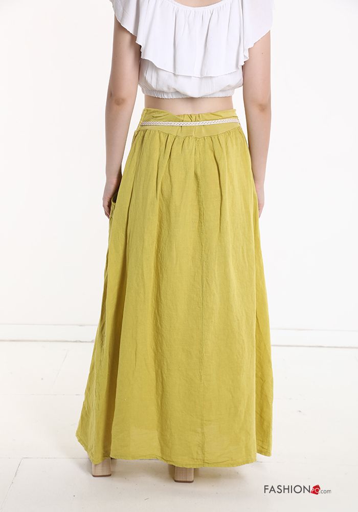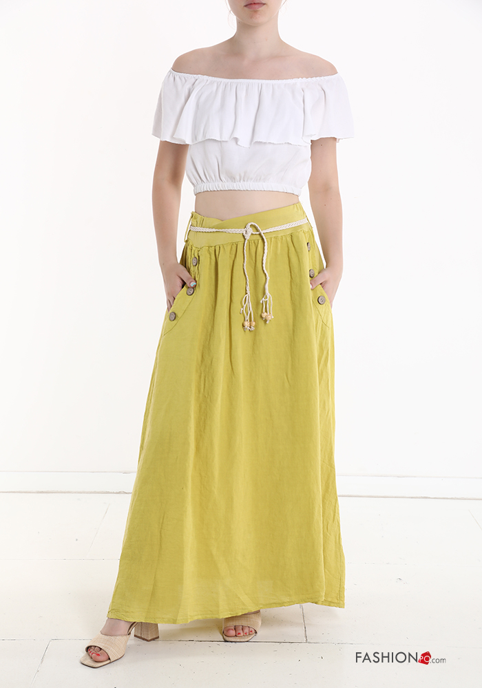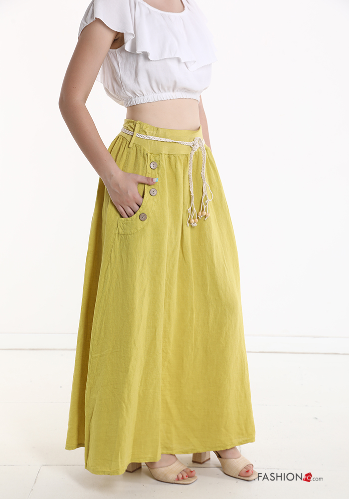 Gonna in Lino con bottoni con cintura con tasche