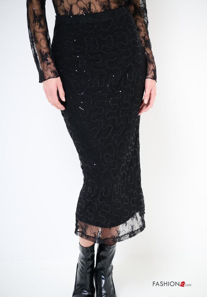 Gonna pizzo Longuette con elastico con paillettes con fodera